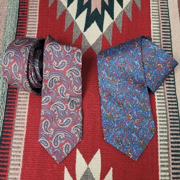 Lot of 2 Vintage Christian Dior Silk Neck Ties, Burgundy Paisley, and Blue Floral