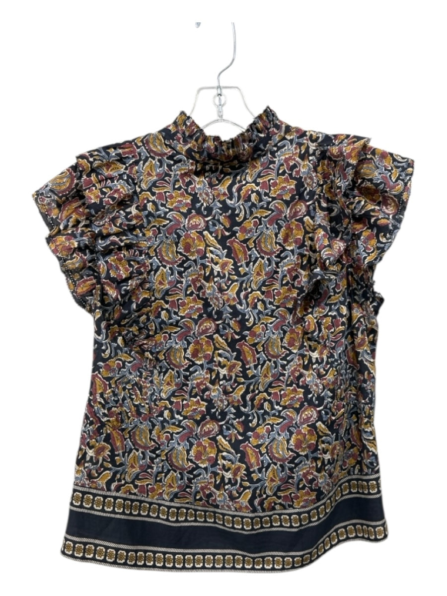 Sea New York Size 0 Black, red, blue Cotton Pleat Detail Paisley Sleeveless Top
