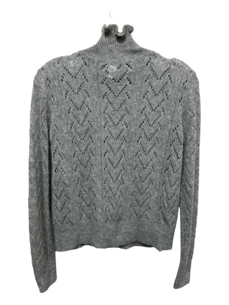 Autumn Cashmere Size S Gray Cashmere High Neck Loose Knit Ruffle Trim Sweater