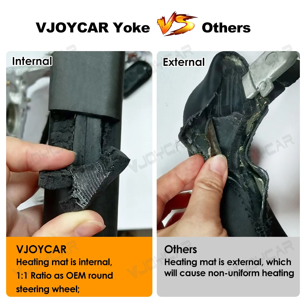 2. VJOYCAR: Heating mat is internal, 1:1 Ratio as OEM round steering wheel;