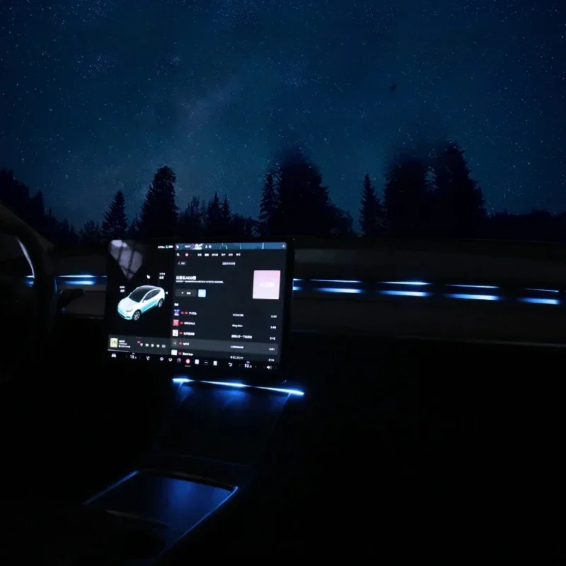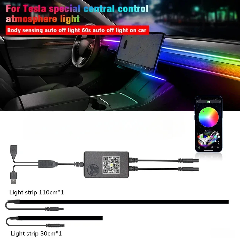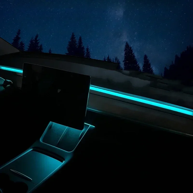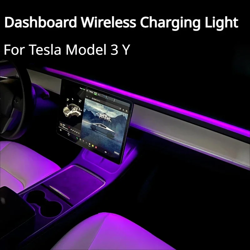 For Tesla Model 3 Y 64Colors RGB Neon LED Center Console Dashboard Wireless Charging Light Ambient Lamp USB Power APP Controller
