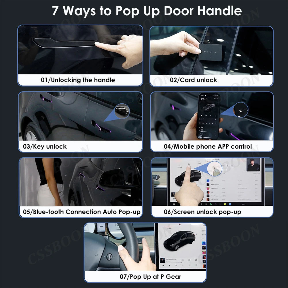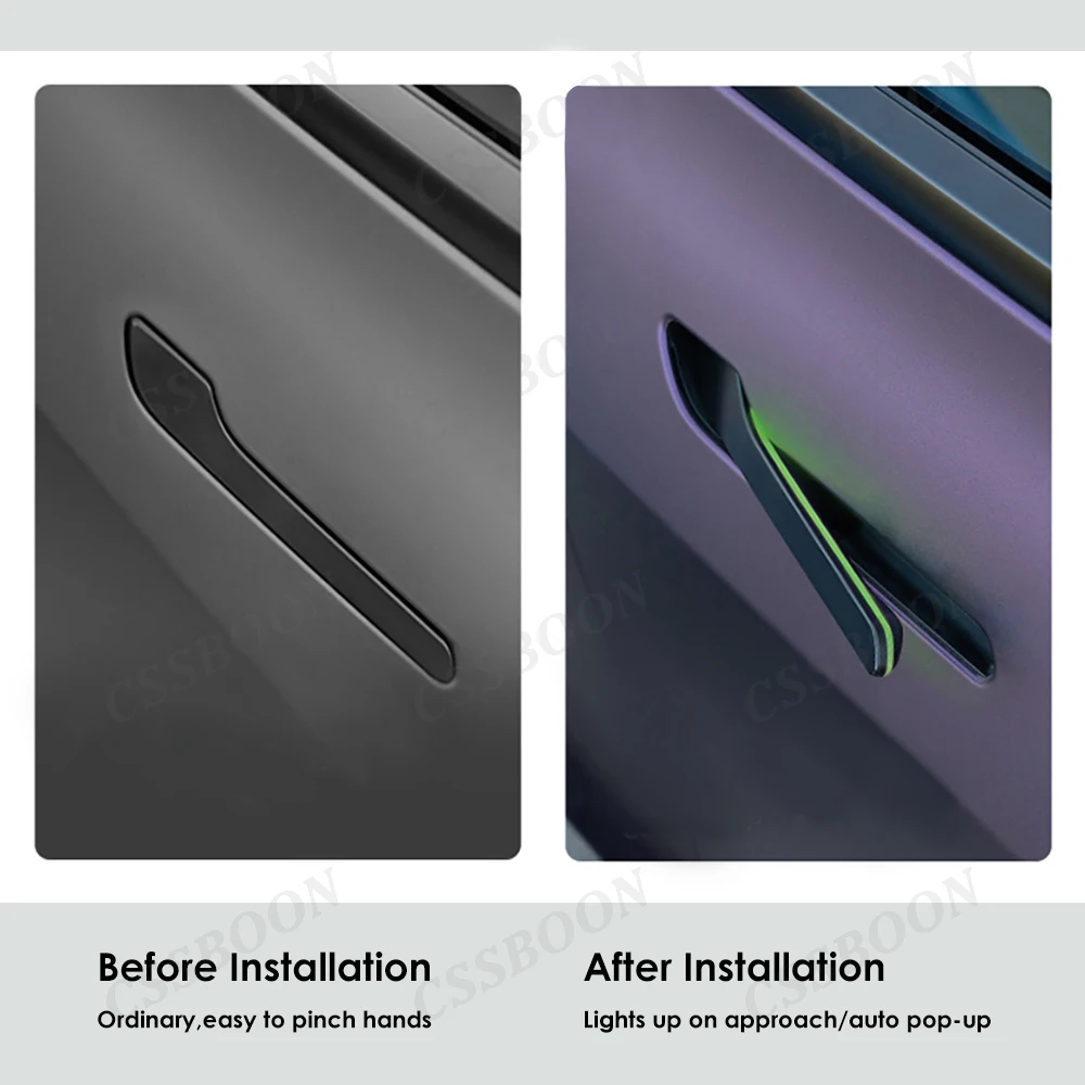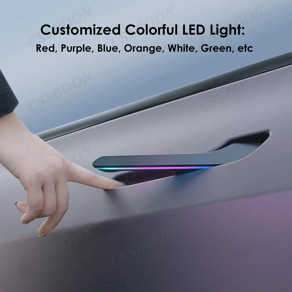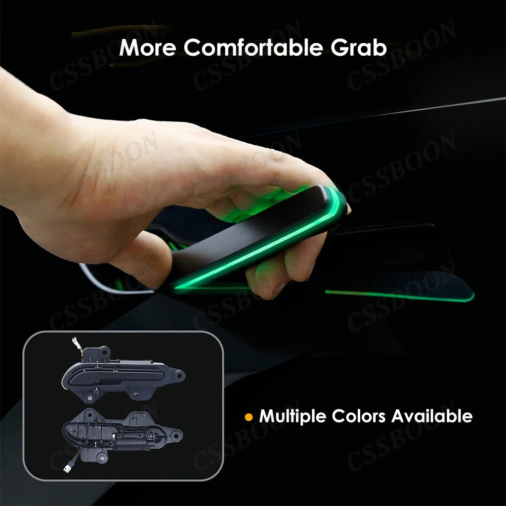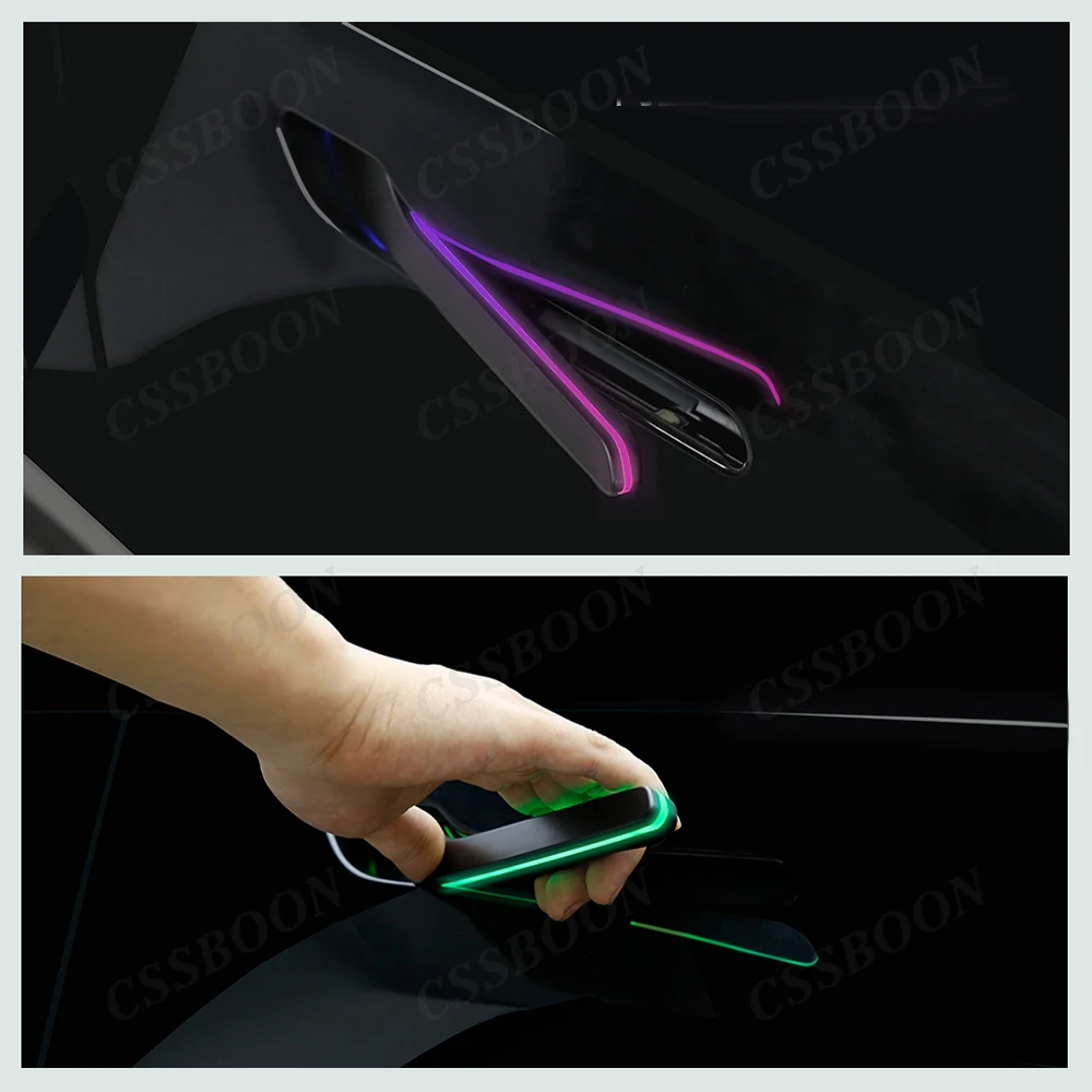 CSSBOON Automatic Door Handle for Tesla Model Y 3 Color LED Light 4 Doors Electric Door Opening Pump Handlebar