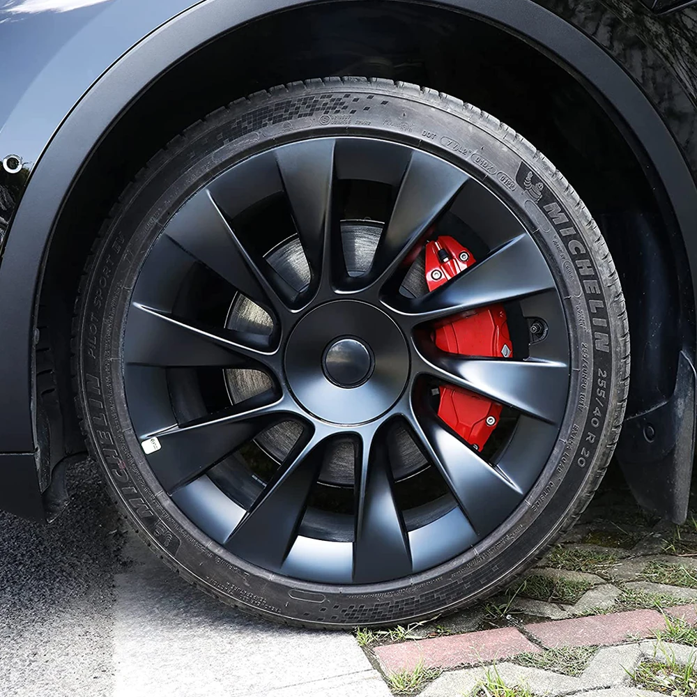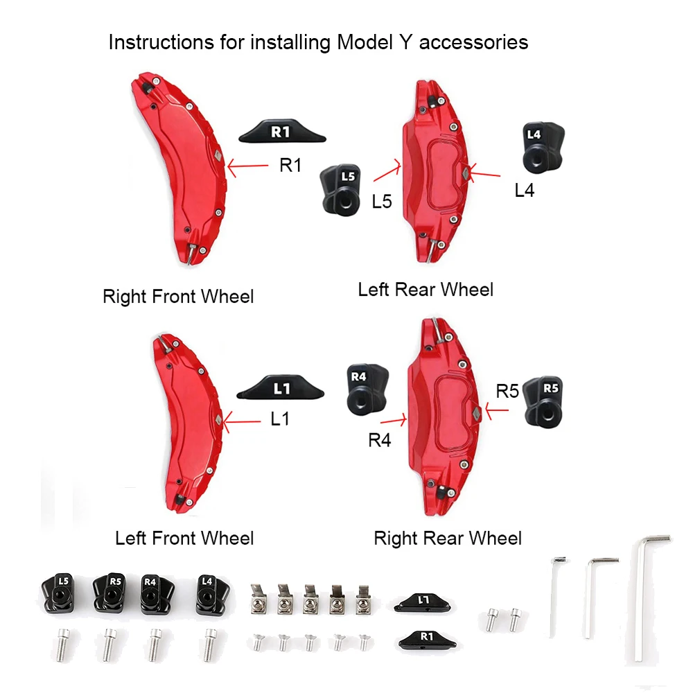 4PCS Brake Caliper Covers For Tesla Model Y 2020-2024, 19 20 Inch Red Wheel Hub Front and Rear Brake Caliper Covers