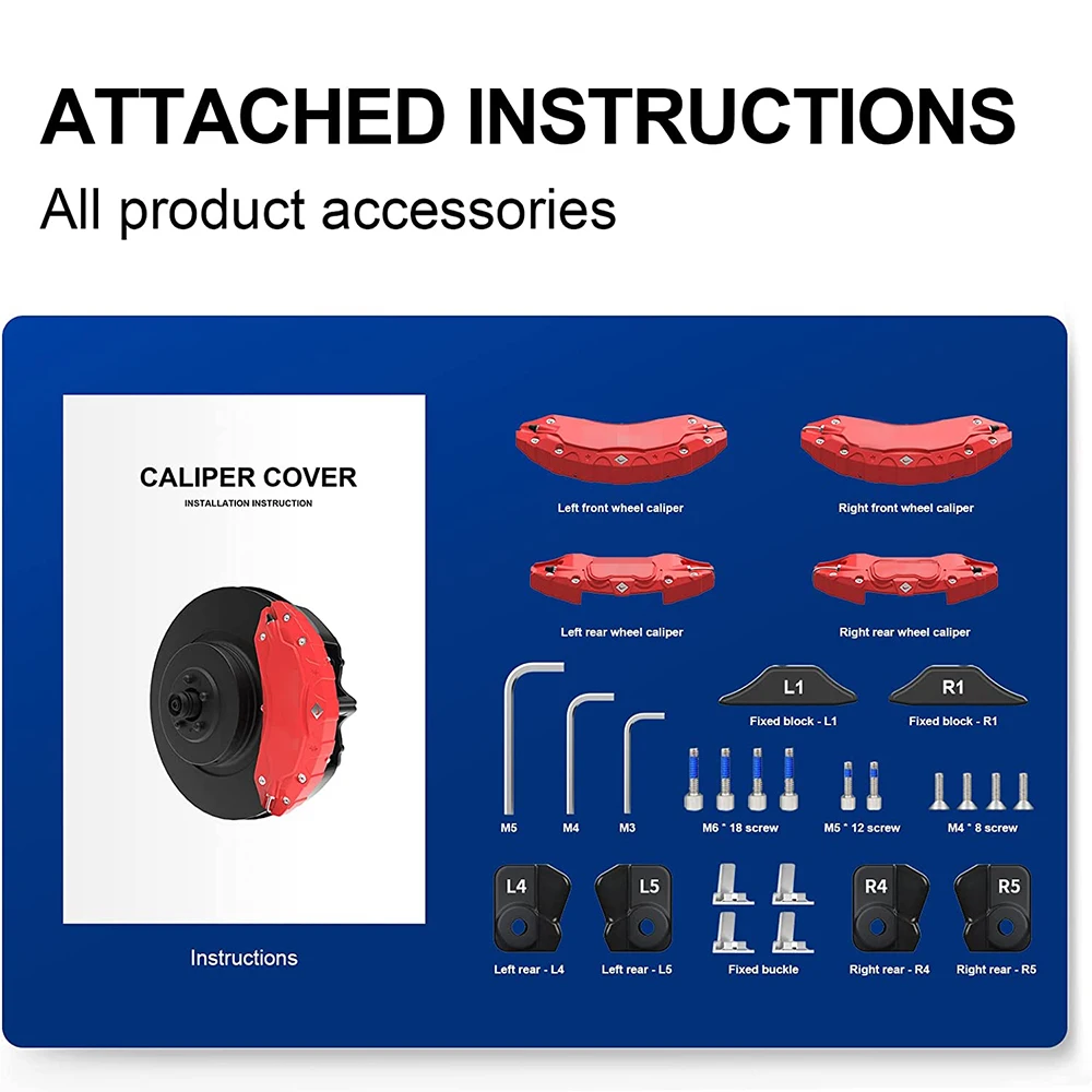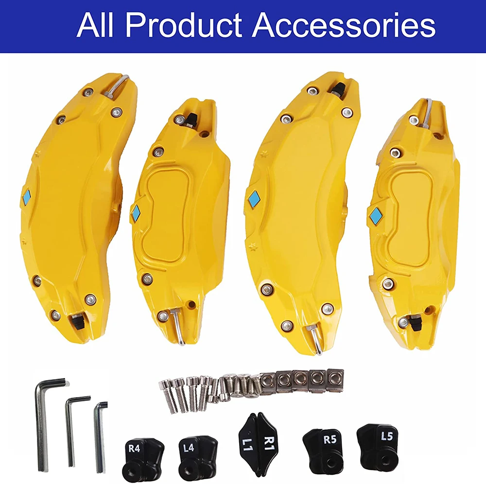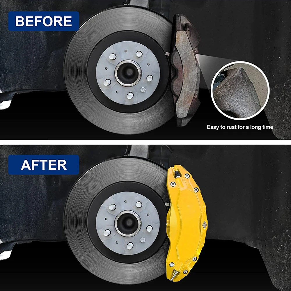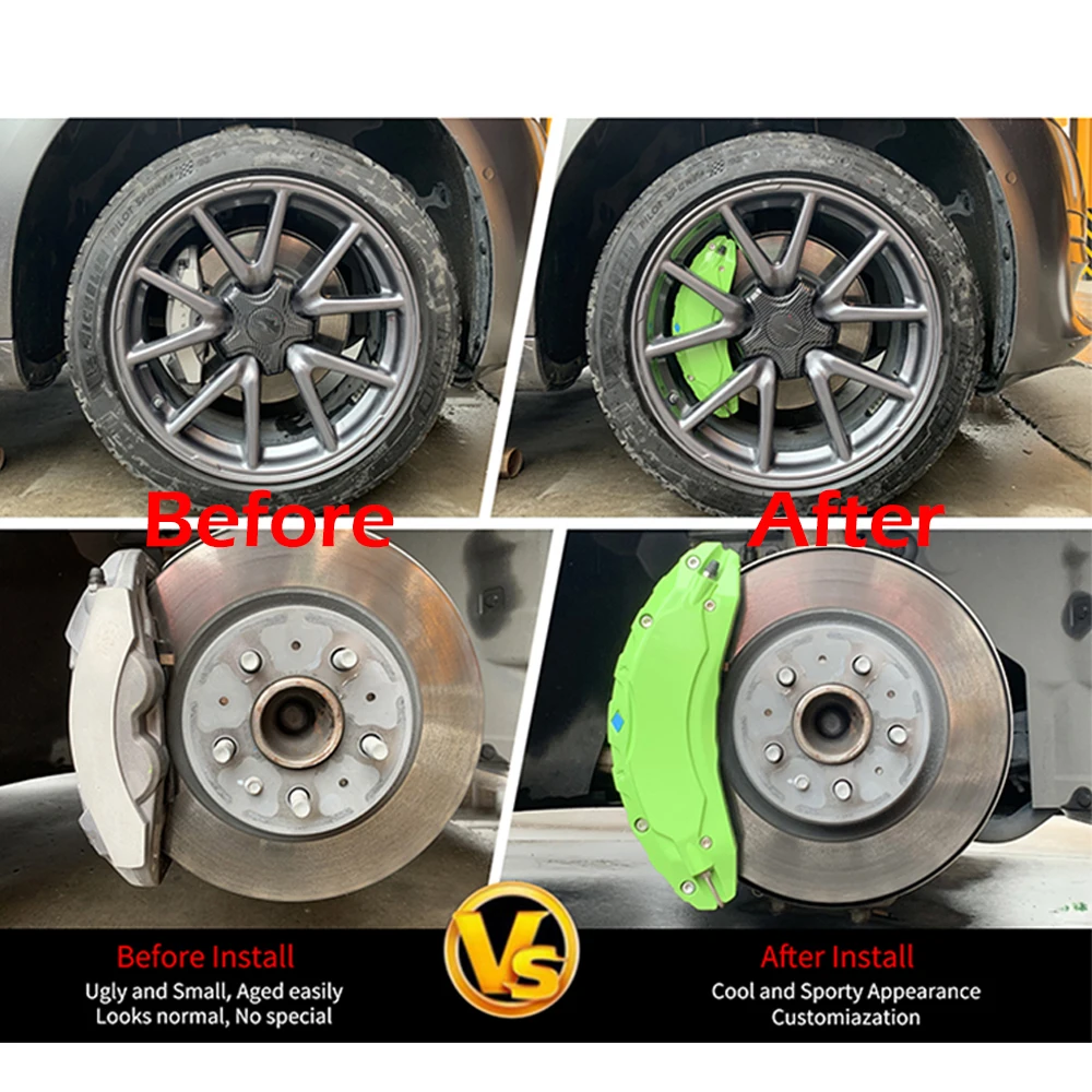 •【Full Fit Design】This set of brake caliper covers is designed by a professional team to perfectly fit all size specifications of the original car. It is safer and more reliable than similar products, and each brake caliper cover has undergone rigorous testing.