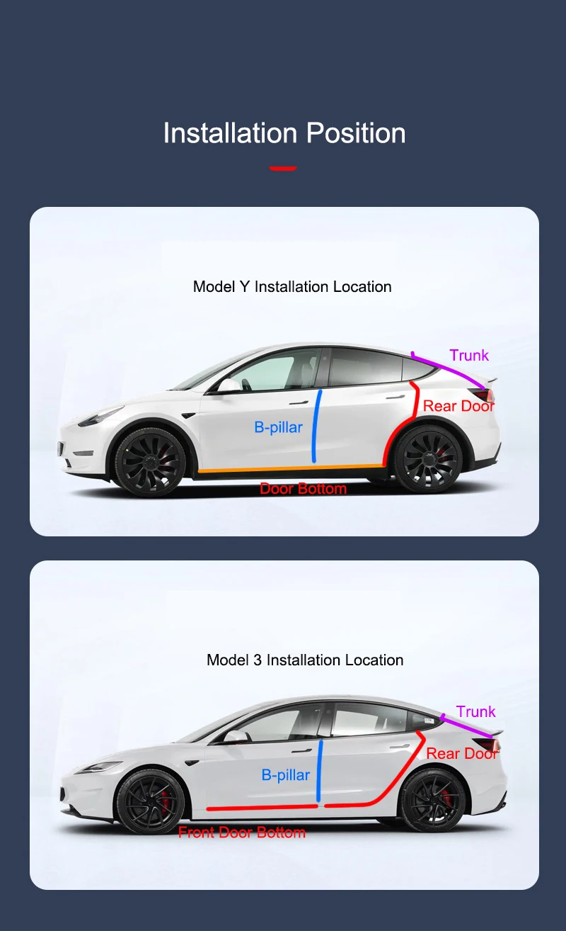For Tesla Model Y 2021-2024 Door Seal Strip Kit Soundproof Rubber Weatherstrip for Model 3 B-Pillar Sealing Set Noise Reduction