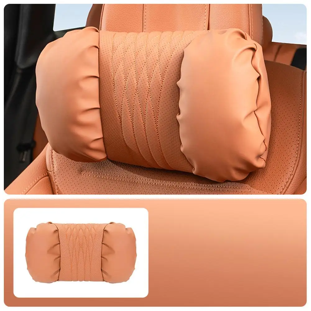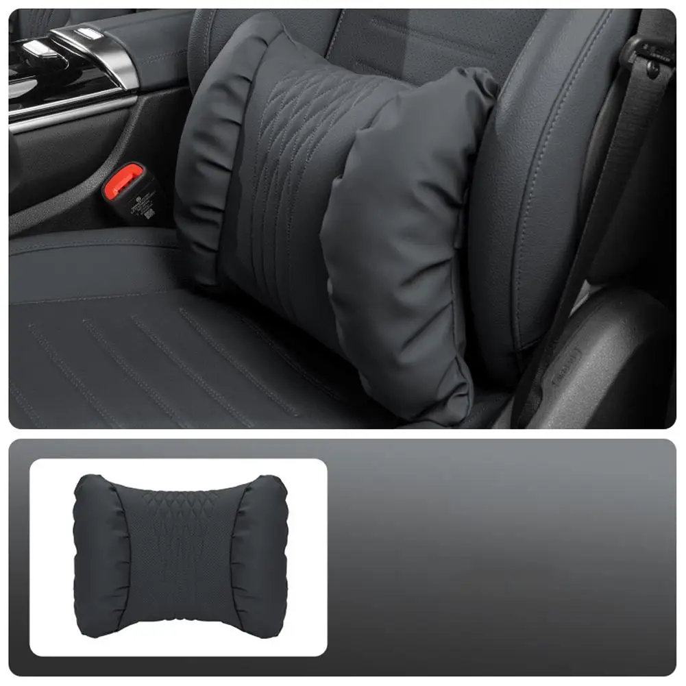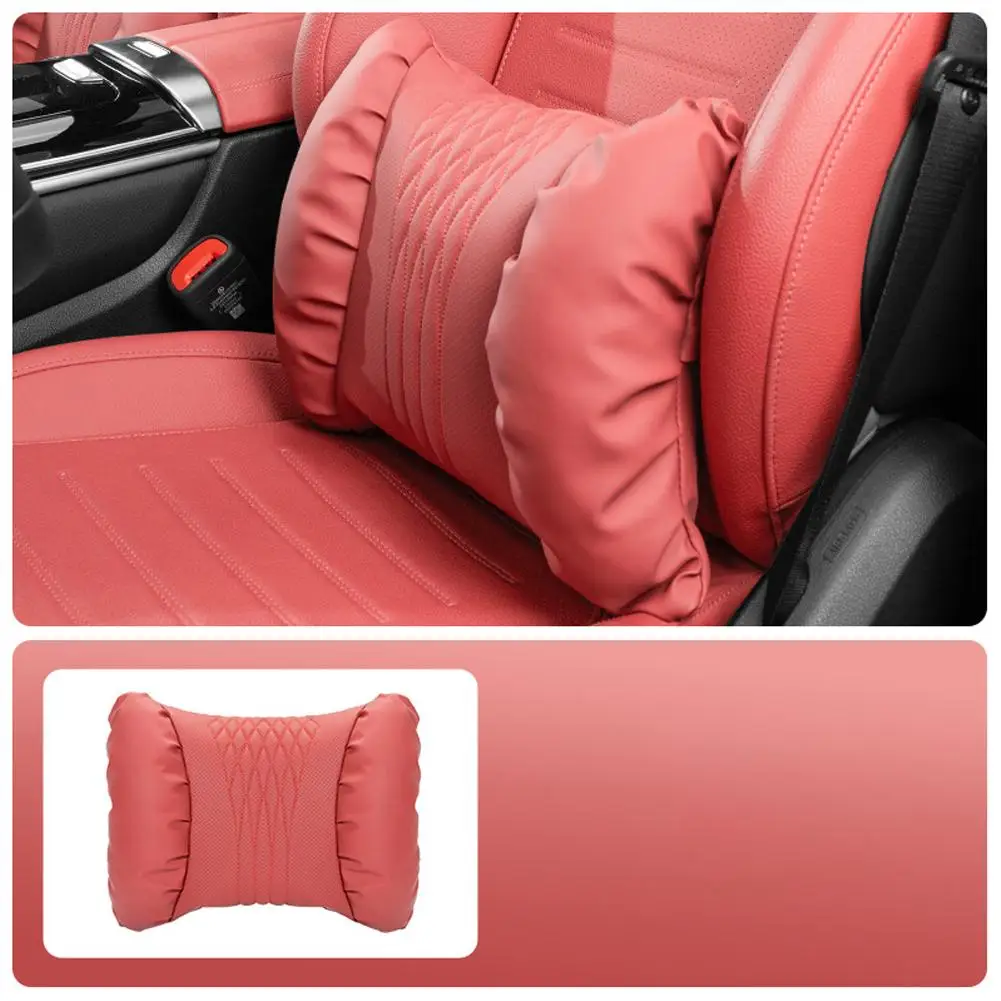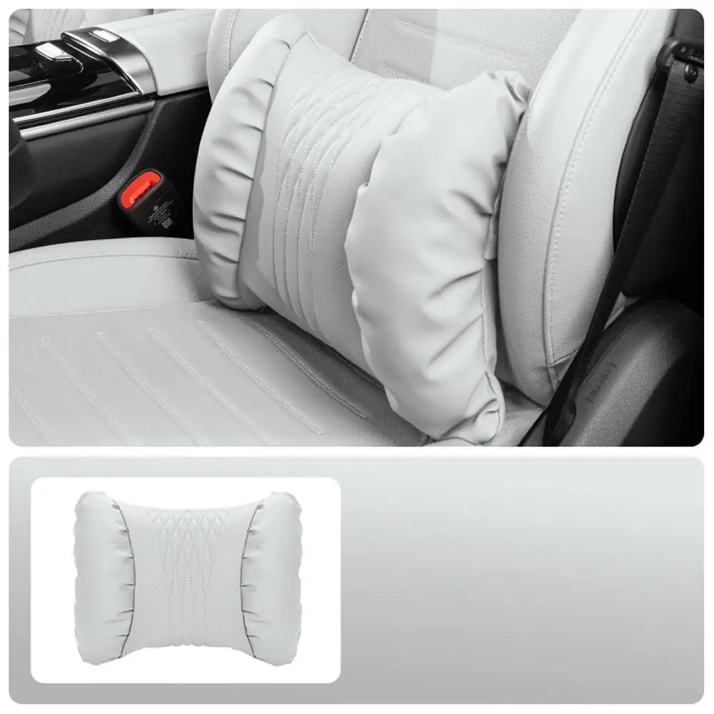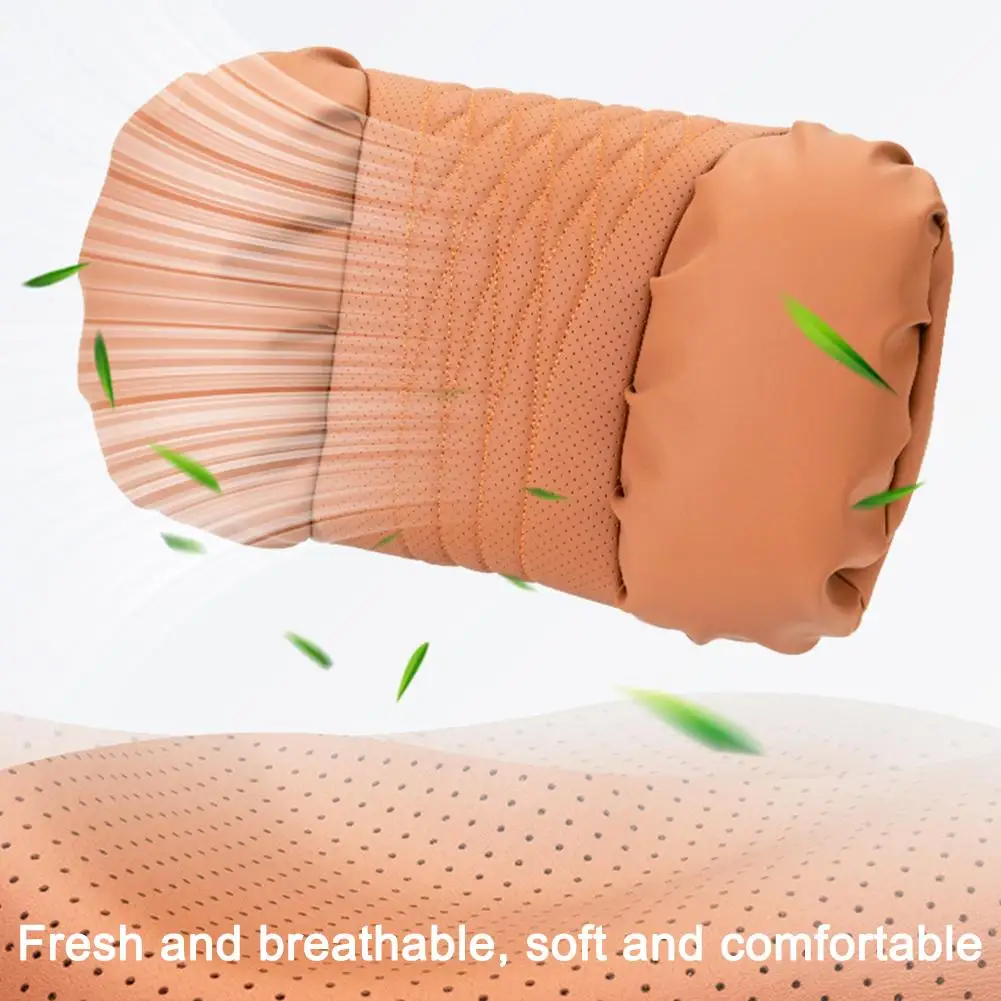 Summer Car Headrest Lumbar Nappa Leather Support Pillow Set Soft Comfortable Breathable Car Neck Pillows Car Seat Accessories
