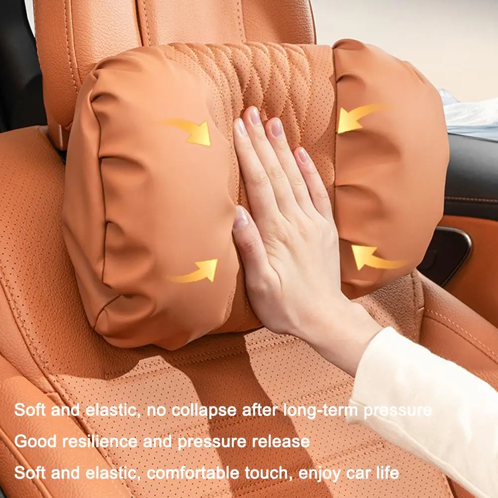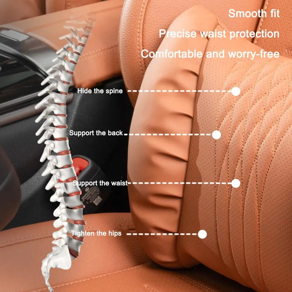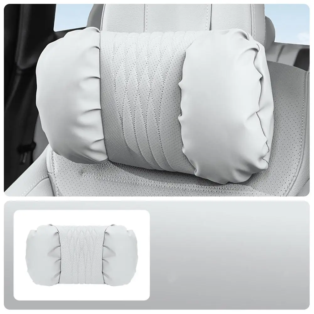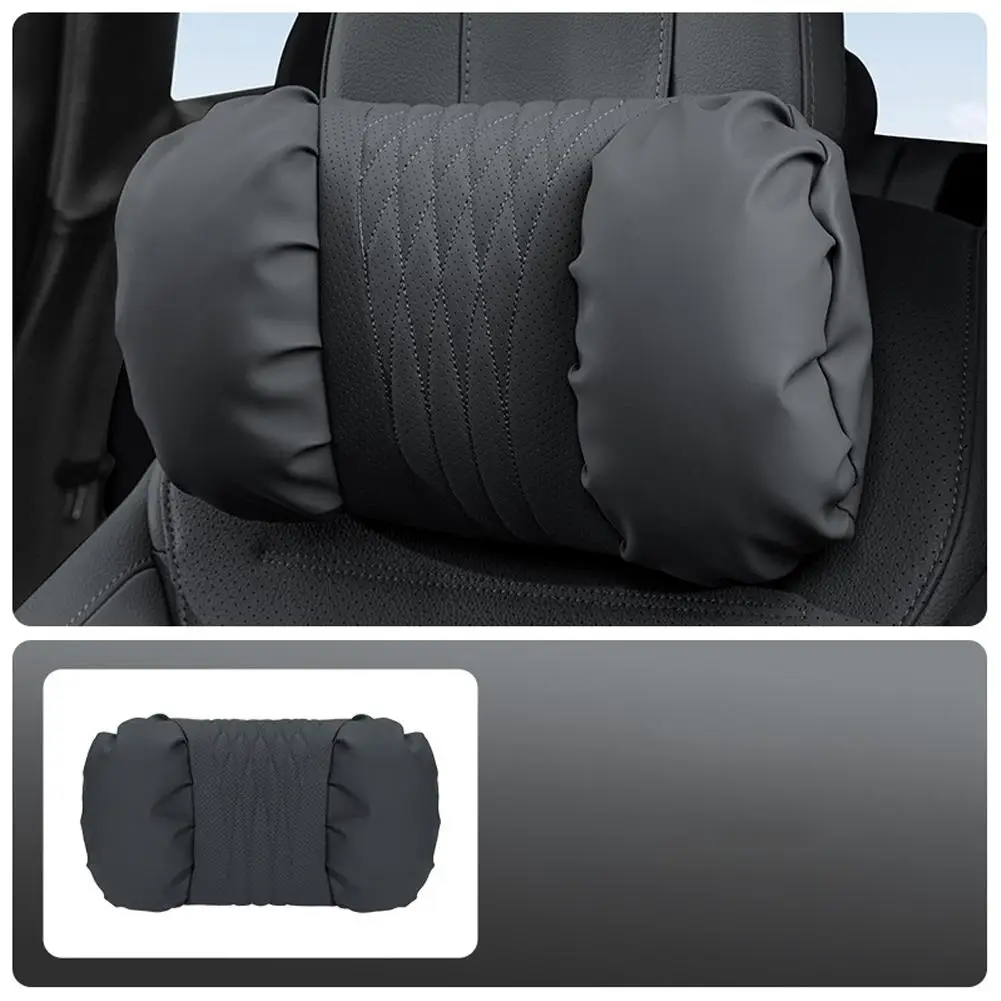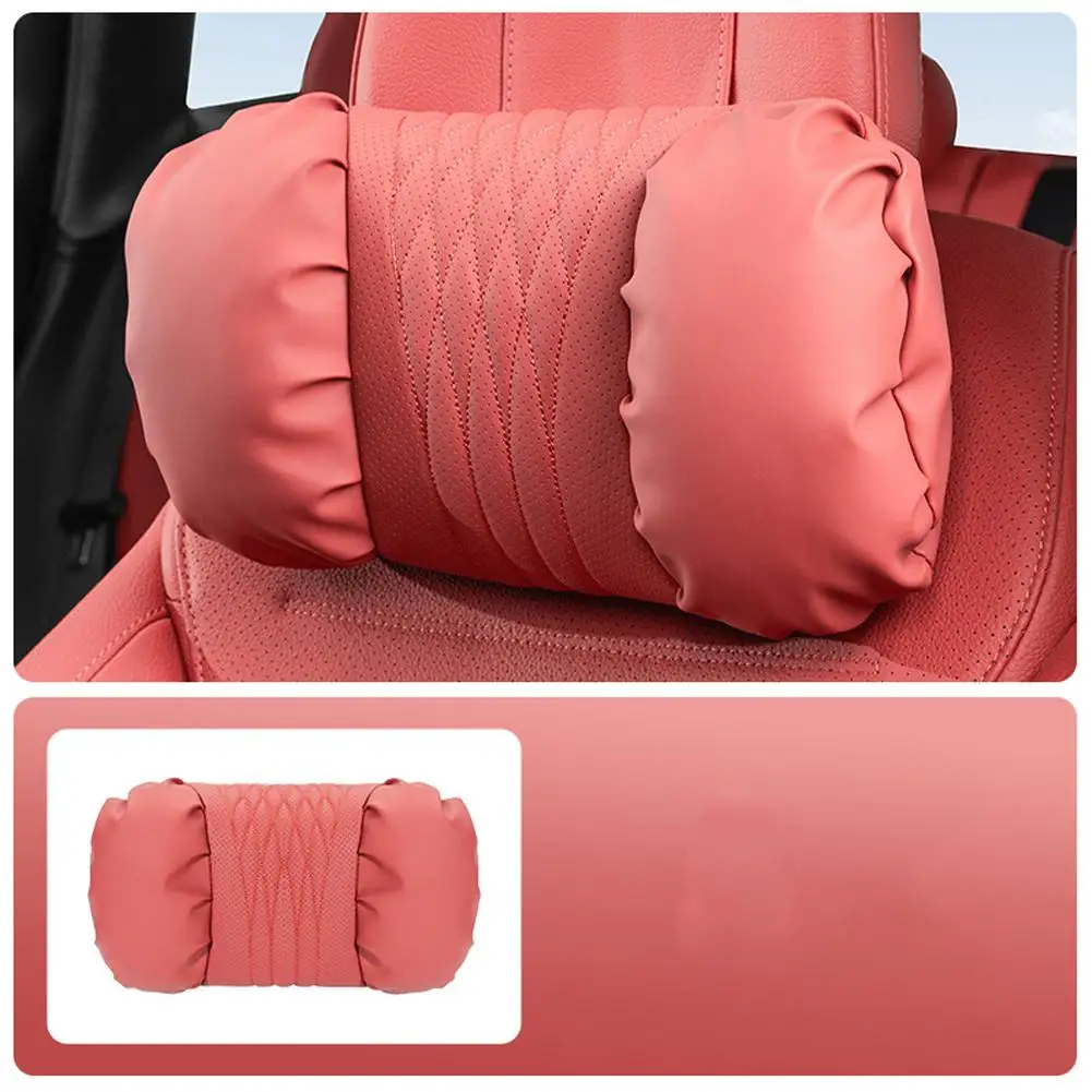 Summer Car Headrest Lumbar Nappa Leather Support Pillow Set Soft Comfortable Breathable Car Neck Pillows Car Seat Accessories
