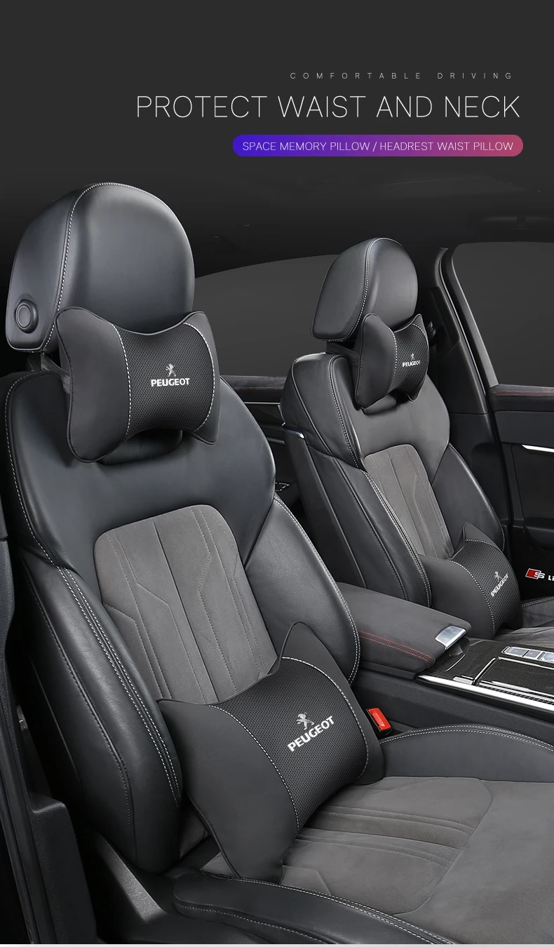 1Pcs Car Seat Headrest Auto Logo Neck Pillow For Peugeot 206 307 308 207 3008 208 407 508 2008 5008 301 406 408 607 4008 107 106 205 108 807