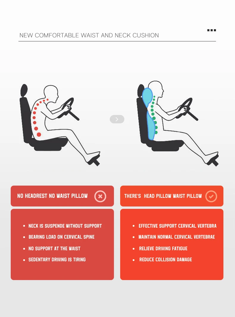 2.The neck pillow can effectively prevent the car neck from floating, fatigue and pain caused by long-term bending, making your driving life more comfortable, safer and healthier.