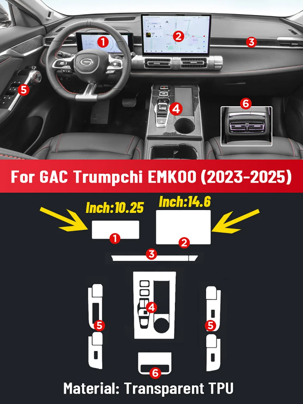 Interior TPU for GAC EMKOO 2023 2024 2025 Protective Film Cover Anti-Scratch Gearbox Panel Navigation Screen Automotive FILM