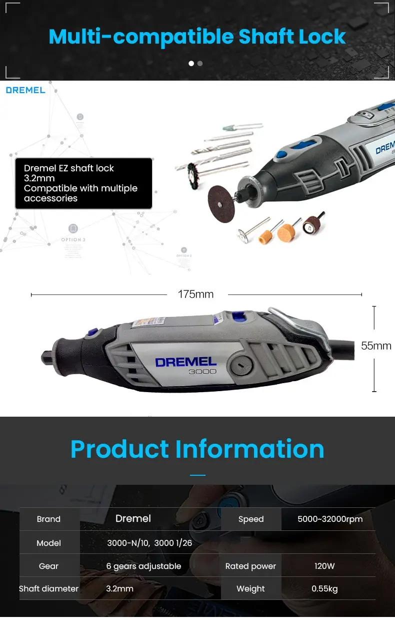 Dremel 3000 1/26 Mini Angle Grinder Rotary Power Tools Multifunctional 5 Speed Polishing Electric for Wood Carving Tools Sets