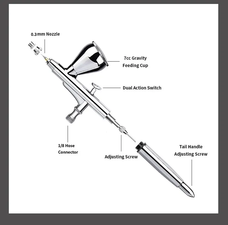 Gravity Feed Dual-Action Airbrush Spray Gun Kit Trigger Spray Gun for Art Craft Model Paint Spraying Hobby 0.3MM 7CC Air Brush