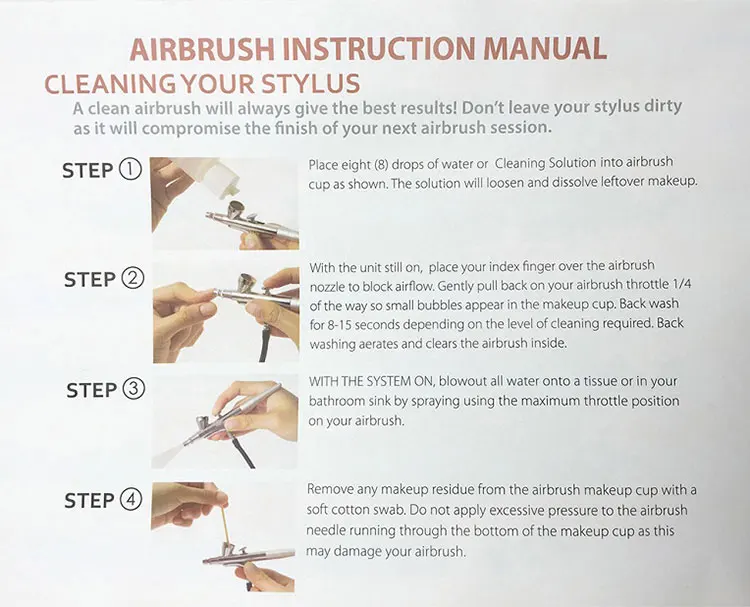 After use, please clean the airbrush, avoid clogging, effect the next time you normally use.