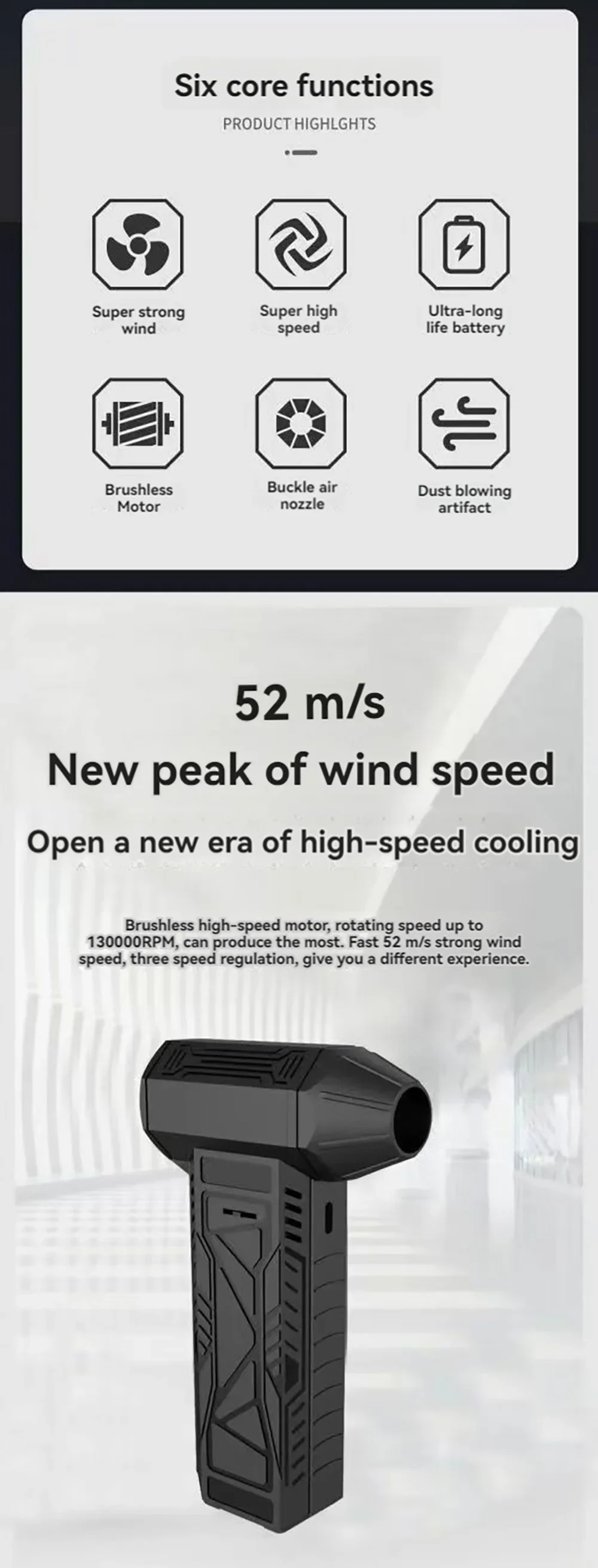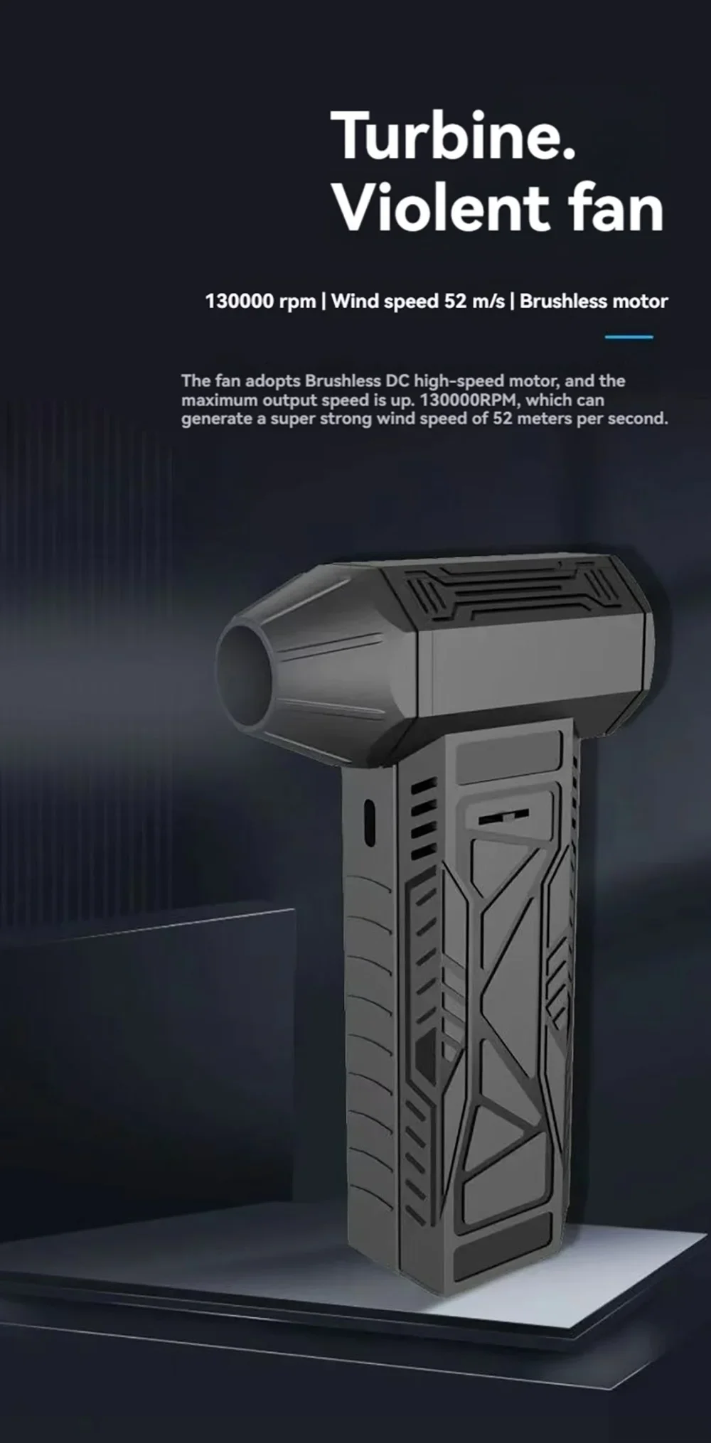 7.4V 130000RPM Brushless Mini Turbo Jet Fan Air Blaster 4000mAh Wireless Air Gun Rechargeable Blower Portable Fan Cross Jet Gun
