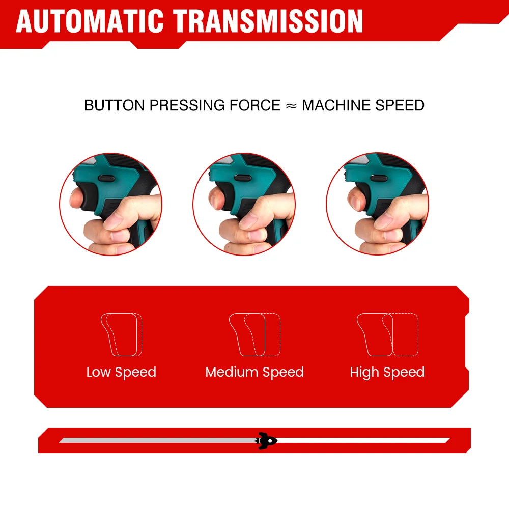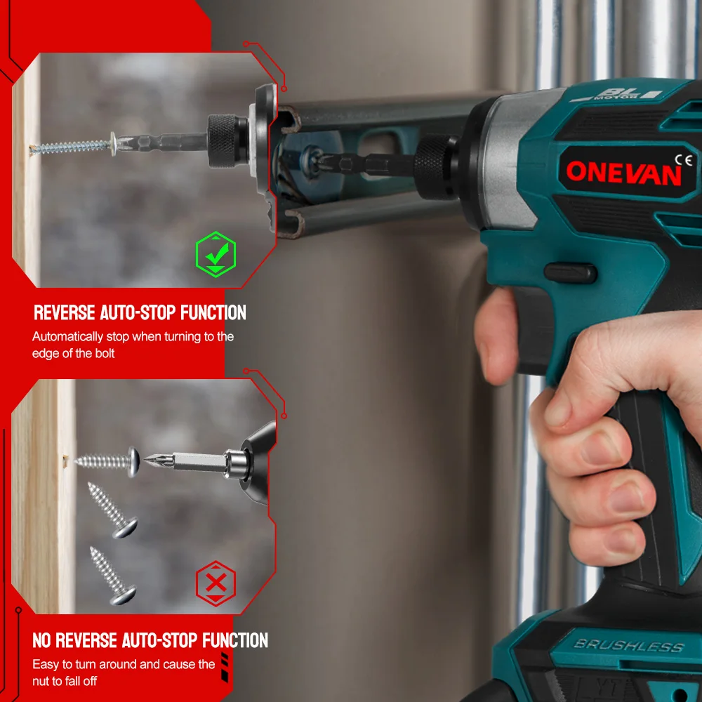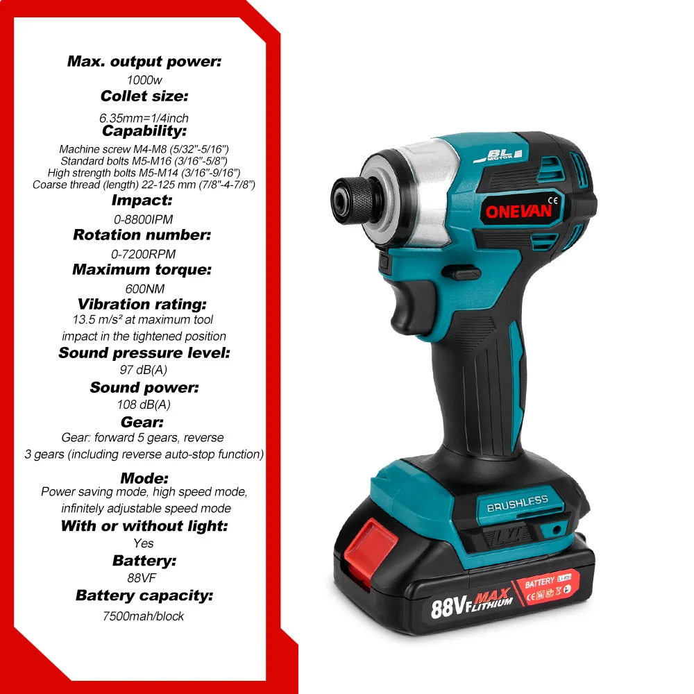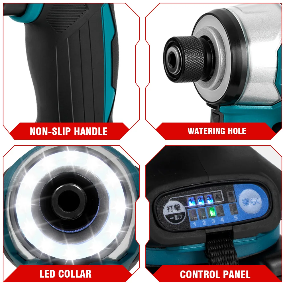 - Powerful Brushless Motor & High Torque: Maximum torque of 600N.M., along with variable speed up to 7200RPM, this impact driver can drive screws or tighten nuts at astonishing speed.