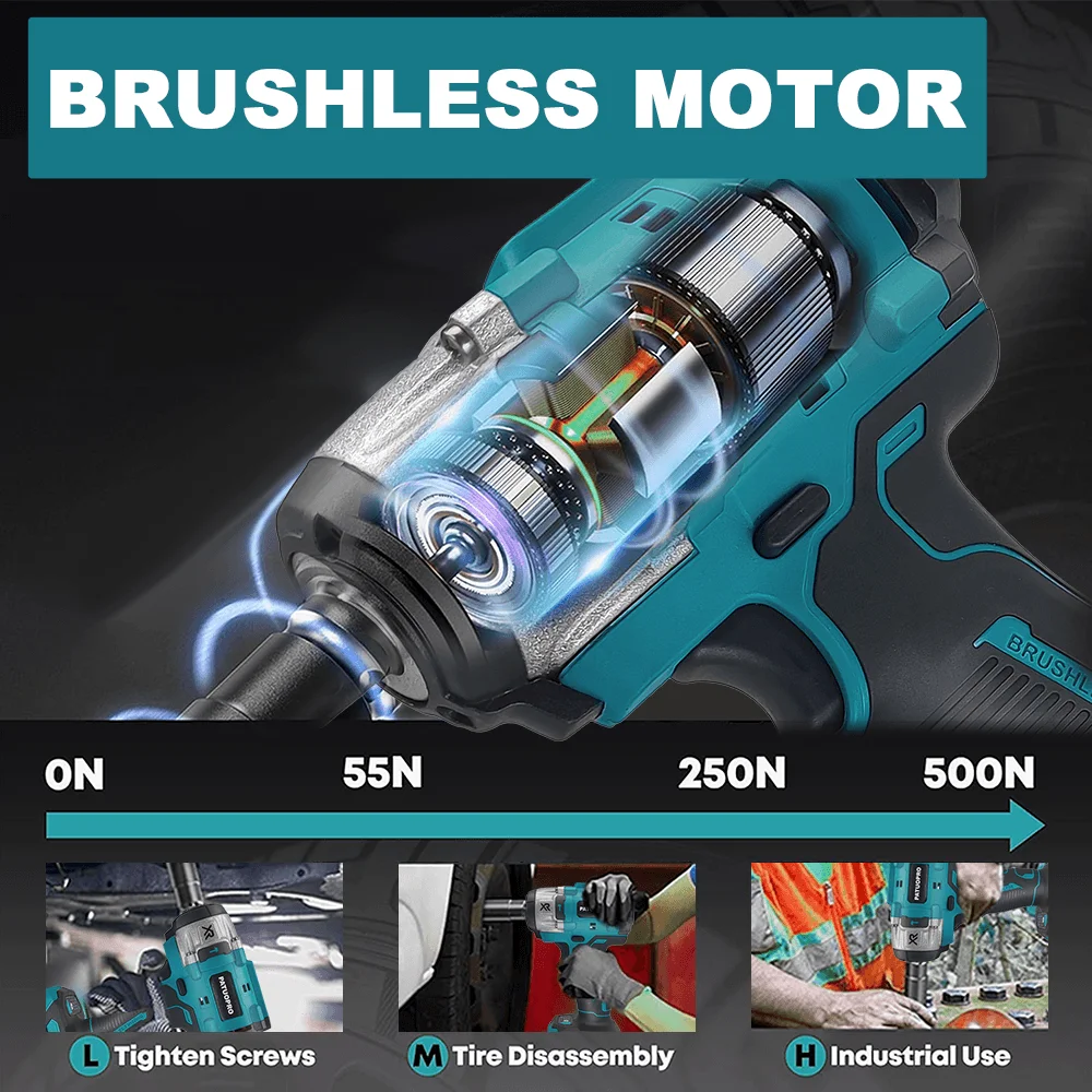 500N.m Brushless Impact Wrench 1/2 Inch Cordless Rechargeable Electric Wrench Home Power Tool For Makita 18V Battery(No Battery)