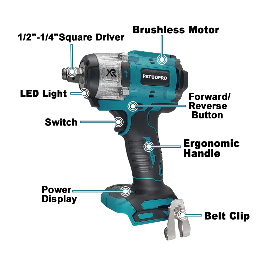 1.【High Power Brushless Motor】Our impact wrench adopts thickened copper wire brushless motor, which increases the torque power of the impact wrench by 30%, up to 500N.m, which can easily loosen or tighten bolts and nuts, making the work Easier and more efficient.