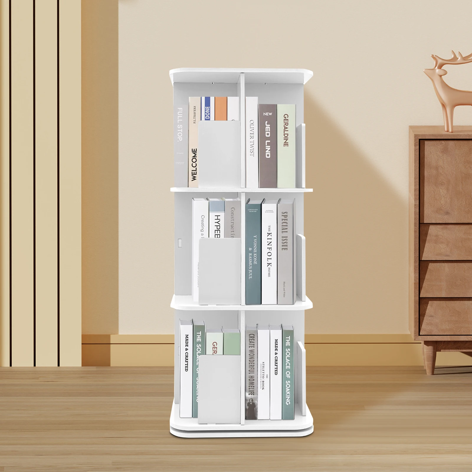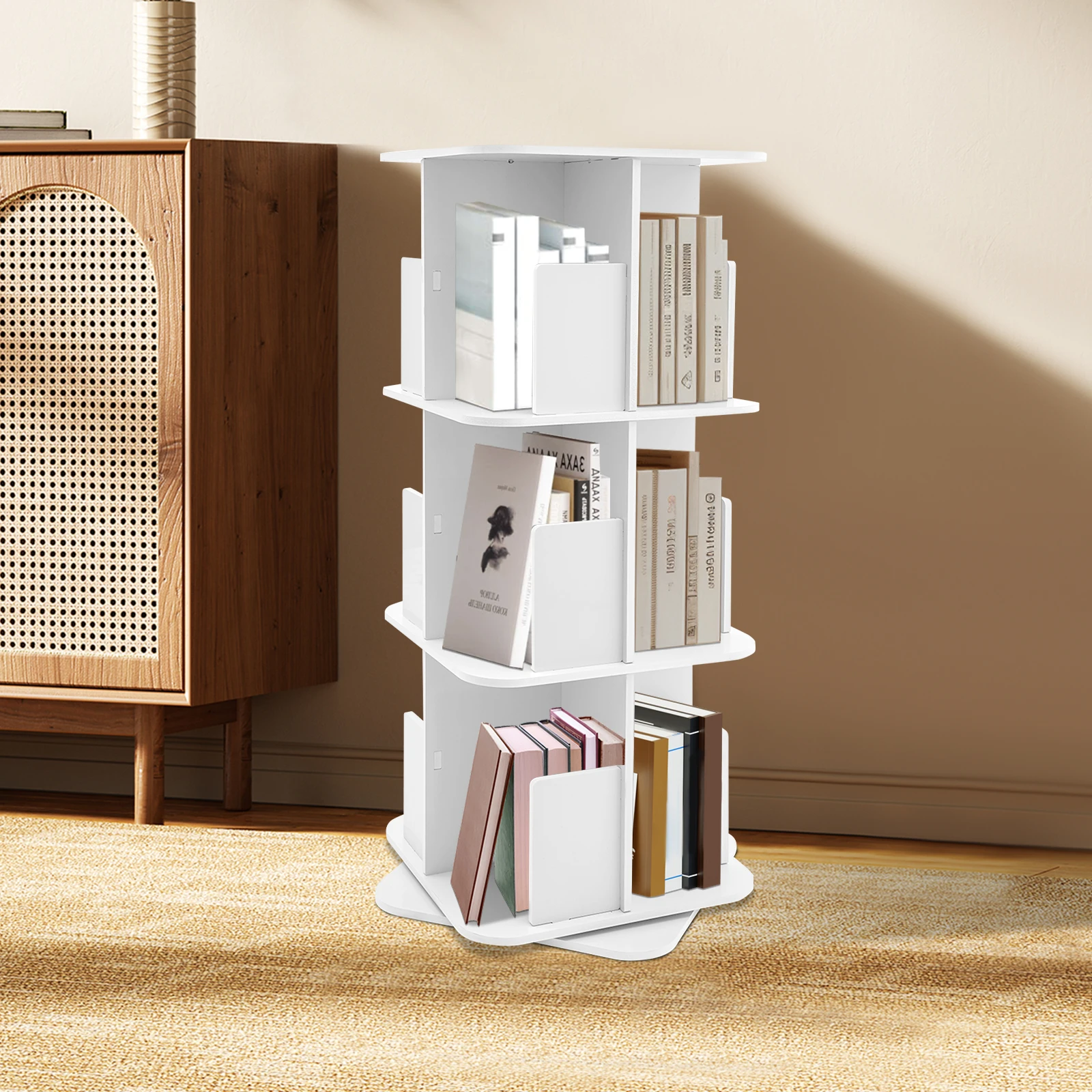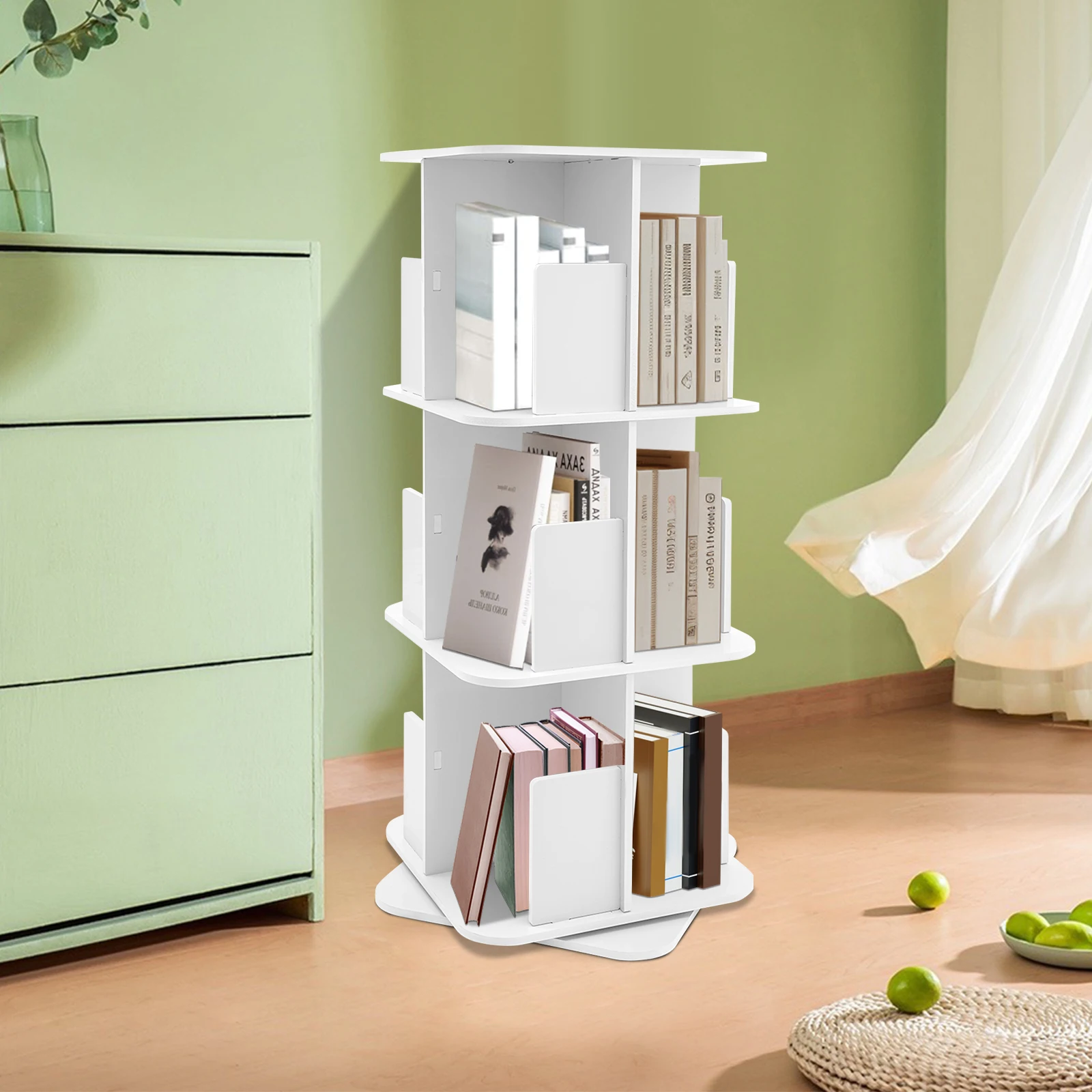 Are you still struggling with too many books and not enough storage space in your home? This 3-tier rotatable bookshelf has a small footprint and large storage space to keep your room organized. The open and 360-degree rotating design allows you to easily find and access your items. Our product is sure to be your ideal storage choice!
