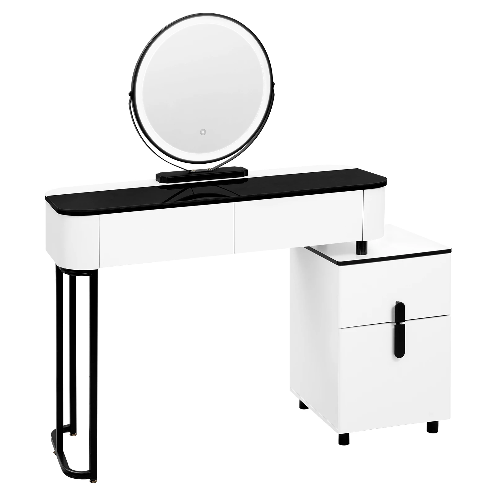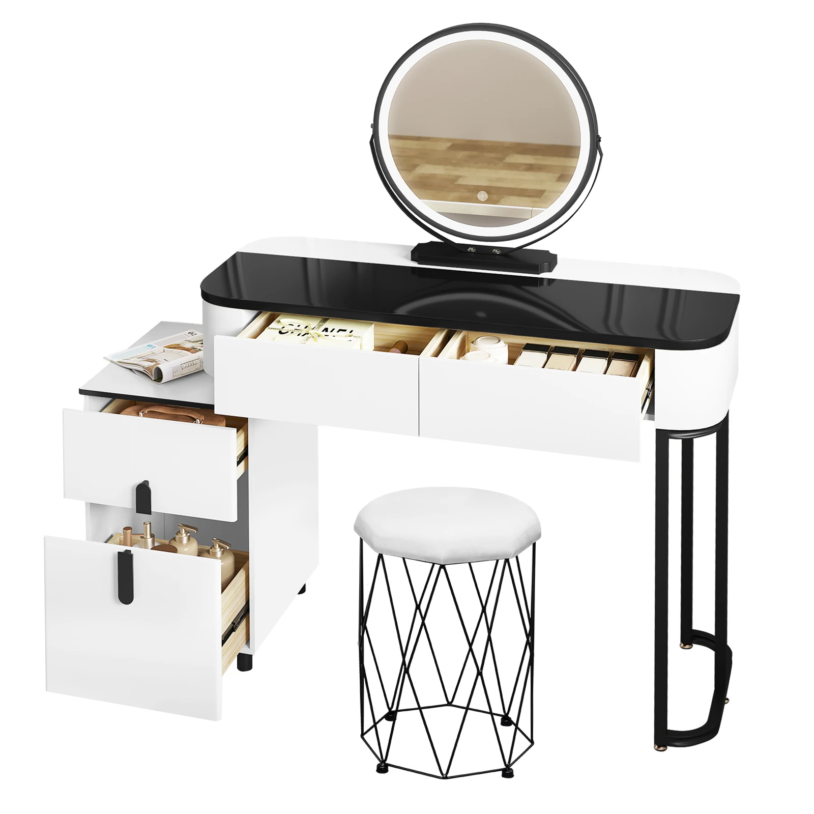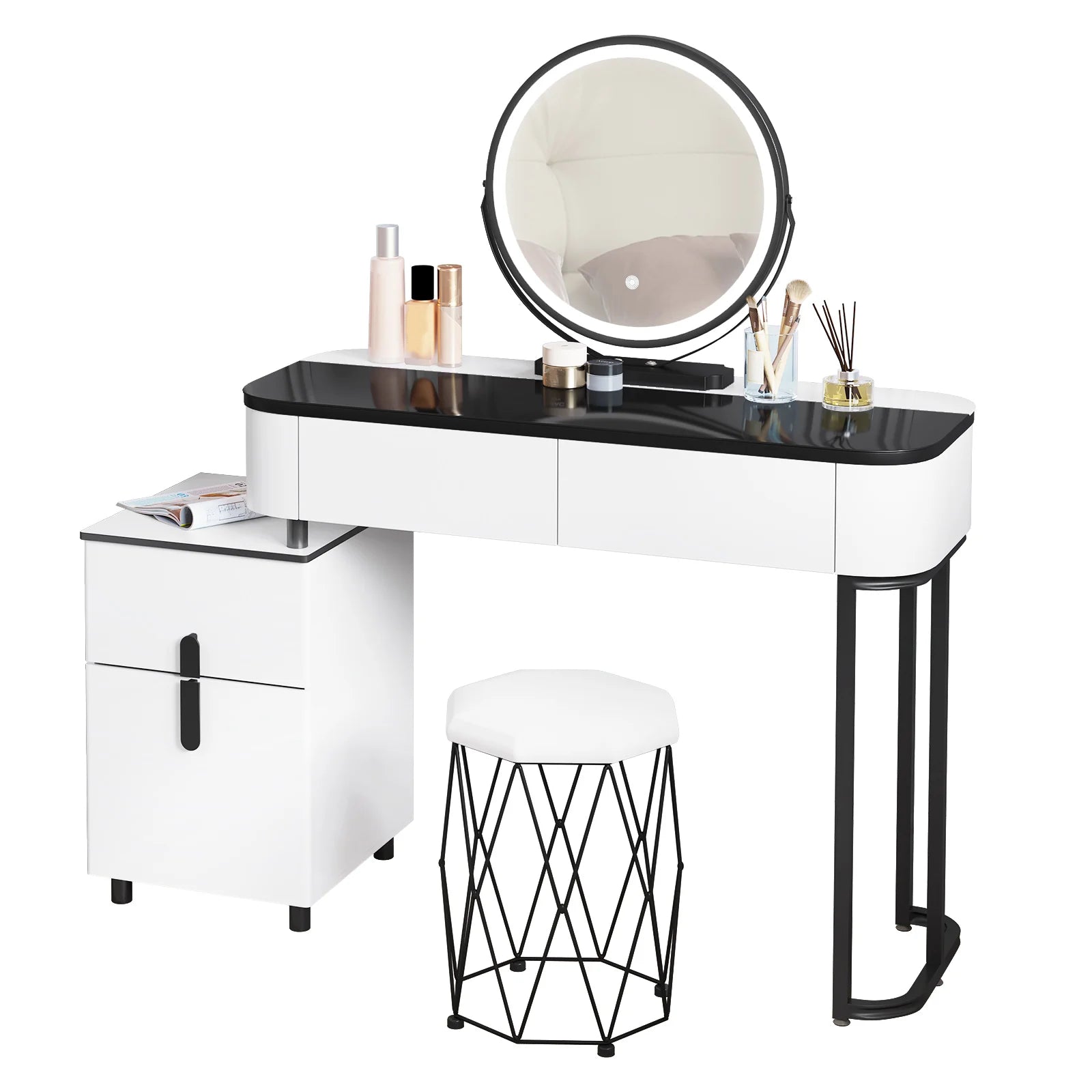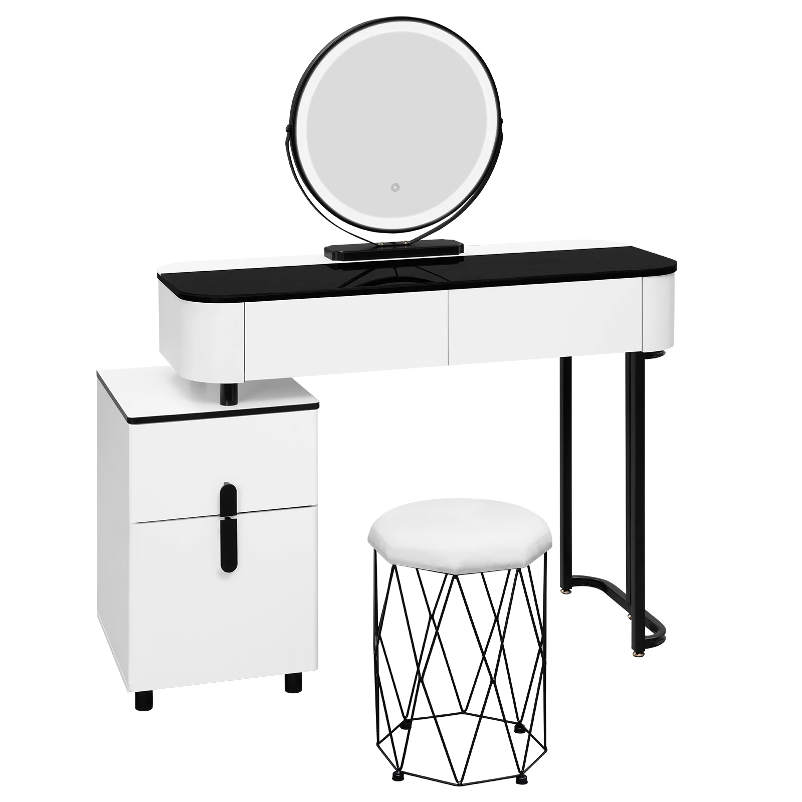 • FASHION & MULTIFUNCTION: The simple style, black and white combination and unique structure allow this dressing table set to add a touch of style and elegance. Without mirror, you can use it as a study table and chair