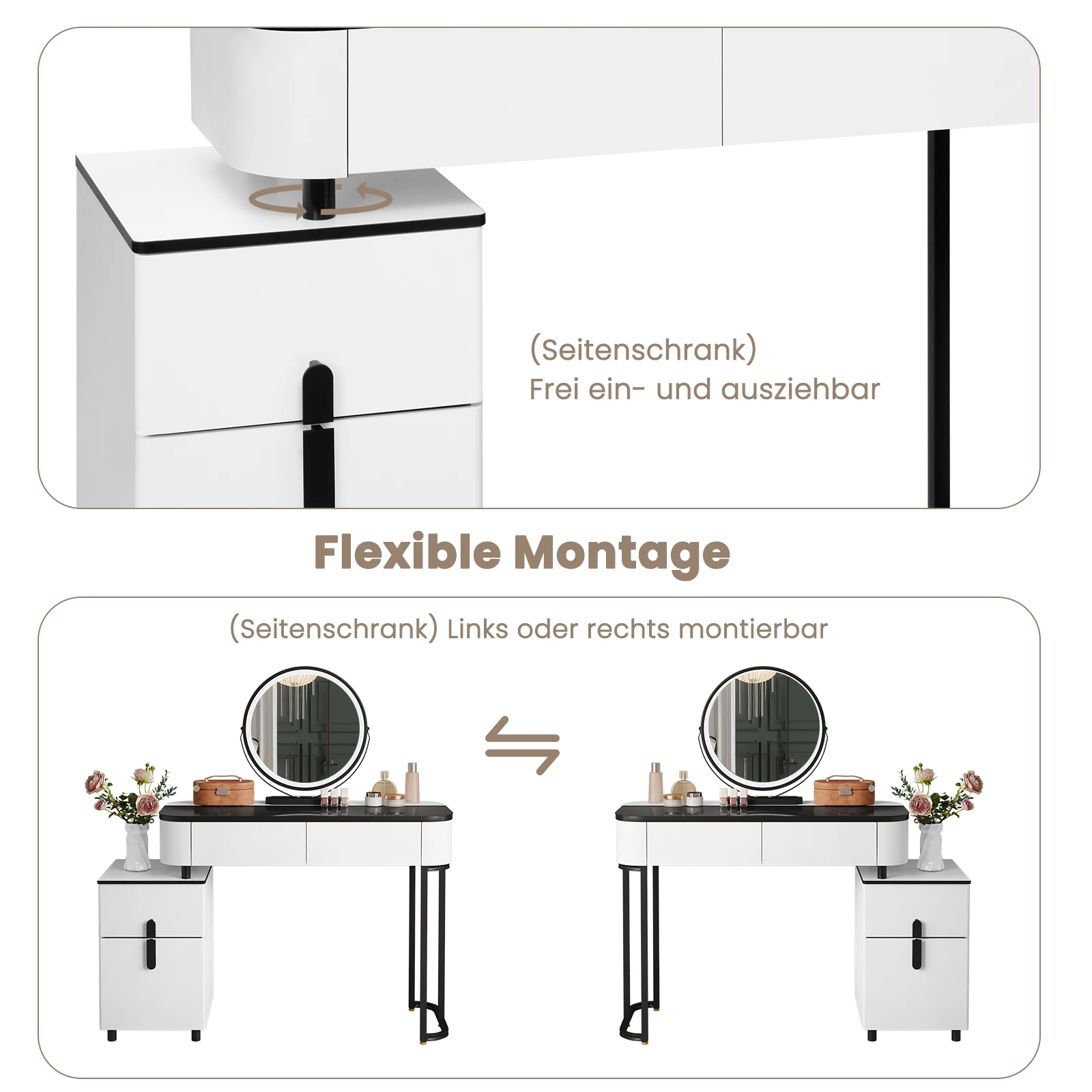 1x dressing table, 1x make-up mirror, 1x operating instructions, 1x accessories