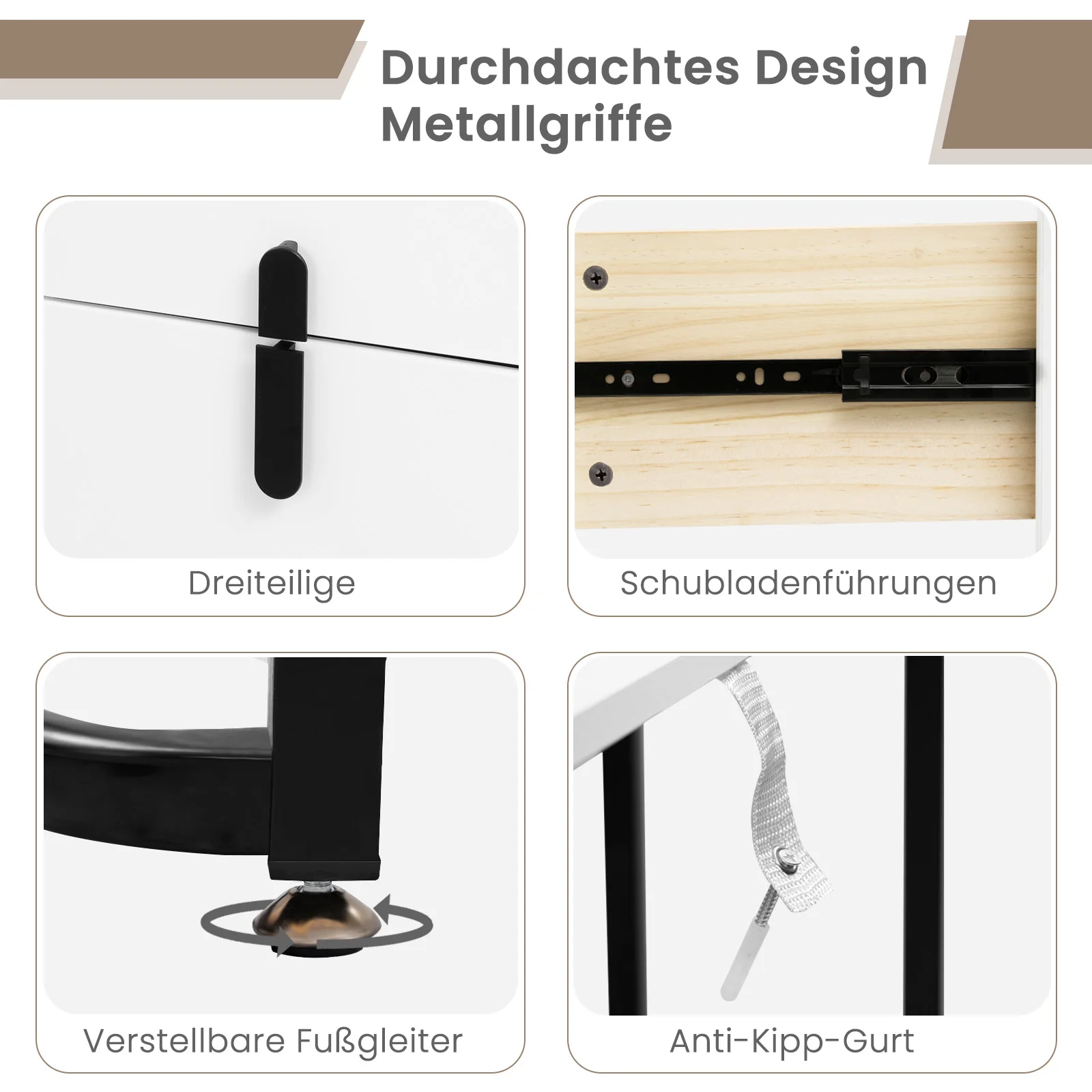• PRACTICAL DESIGN: The chest of drawers can be mounted on the left or right and adjusted. The table is equipped with adjustable legs and anti-tip straps to improve stability and safety. The stool's non-slip pads protect the floor