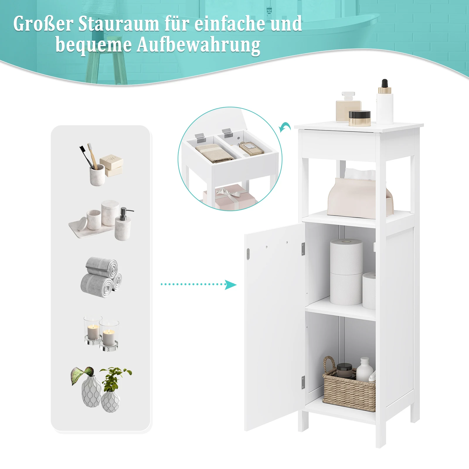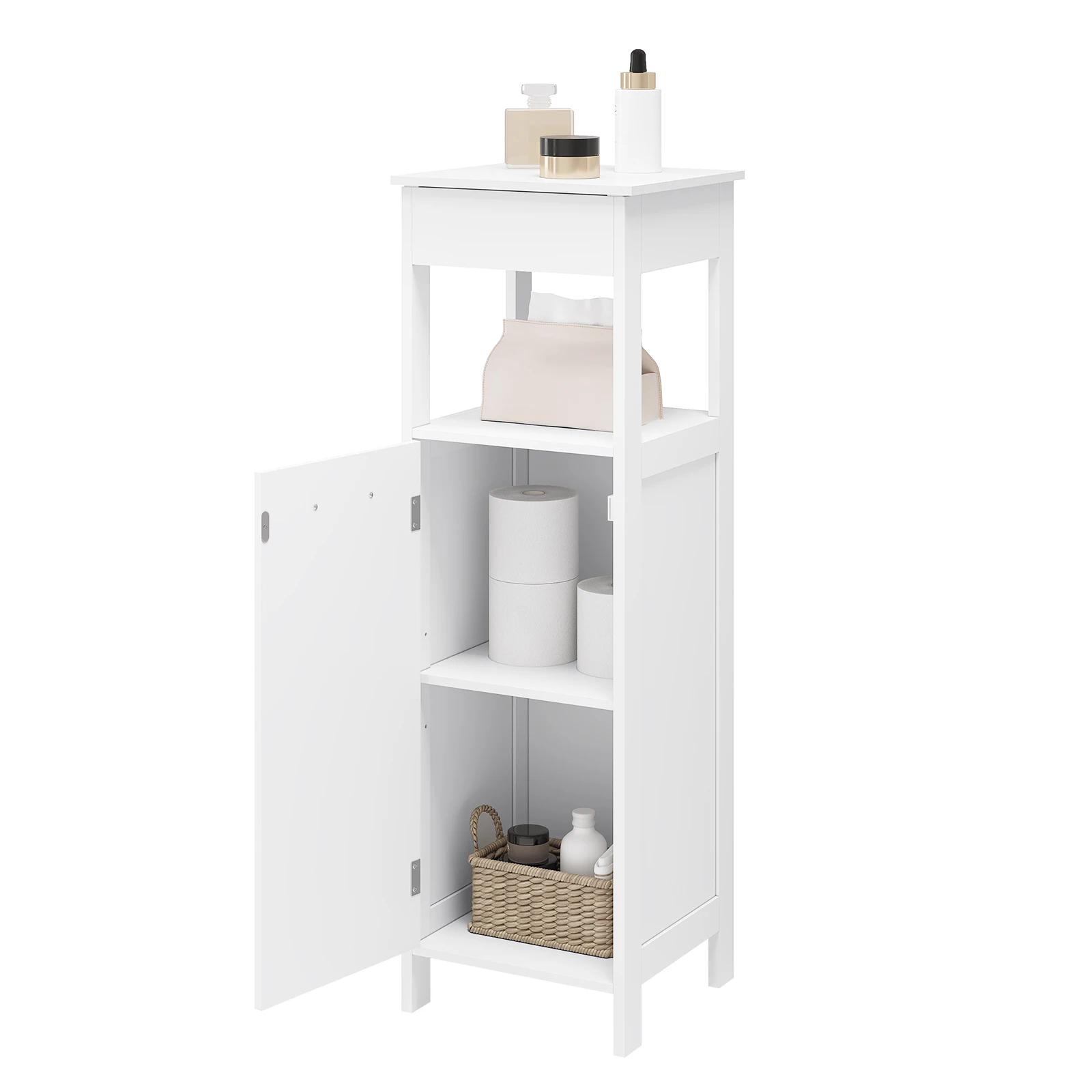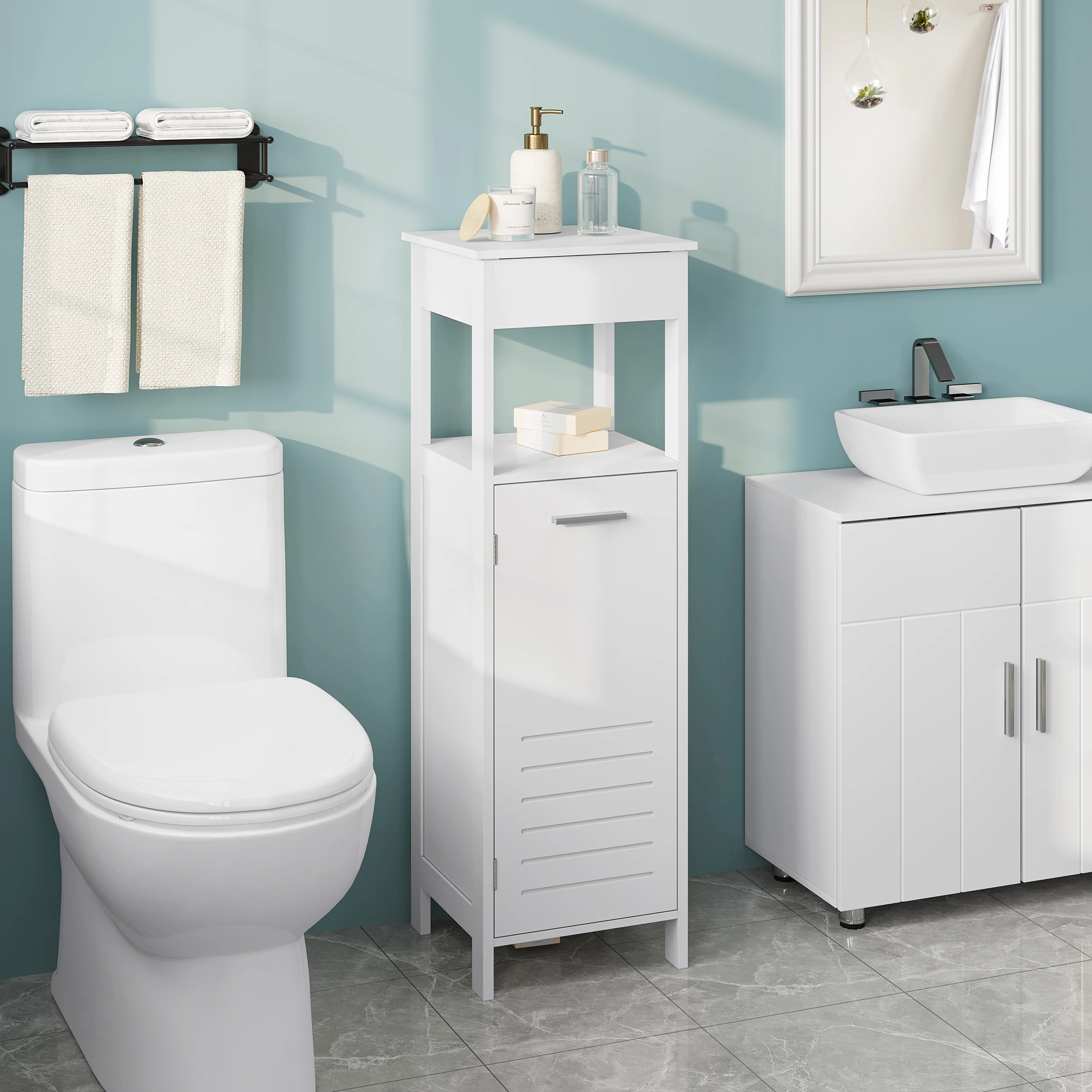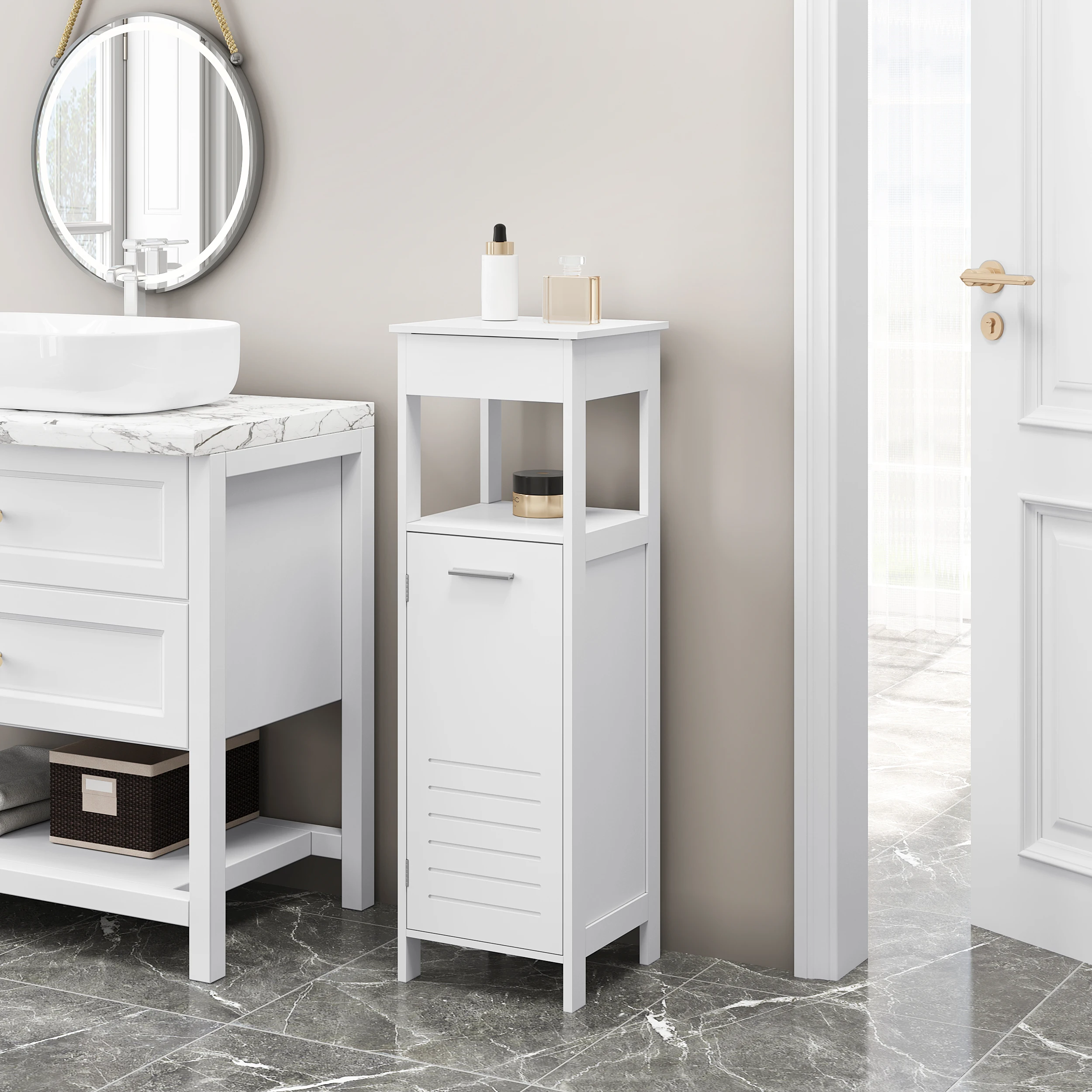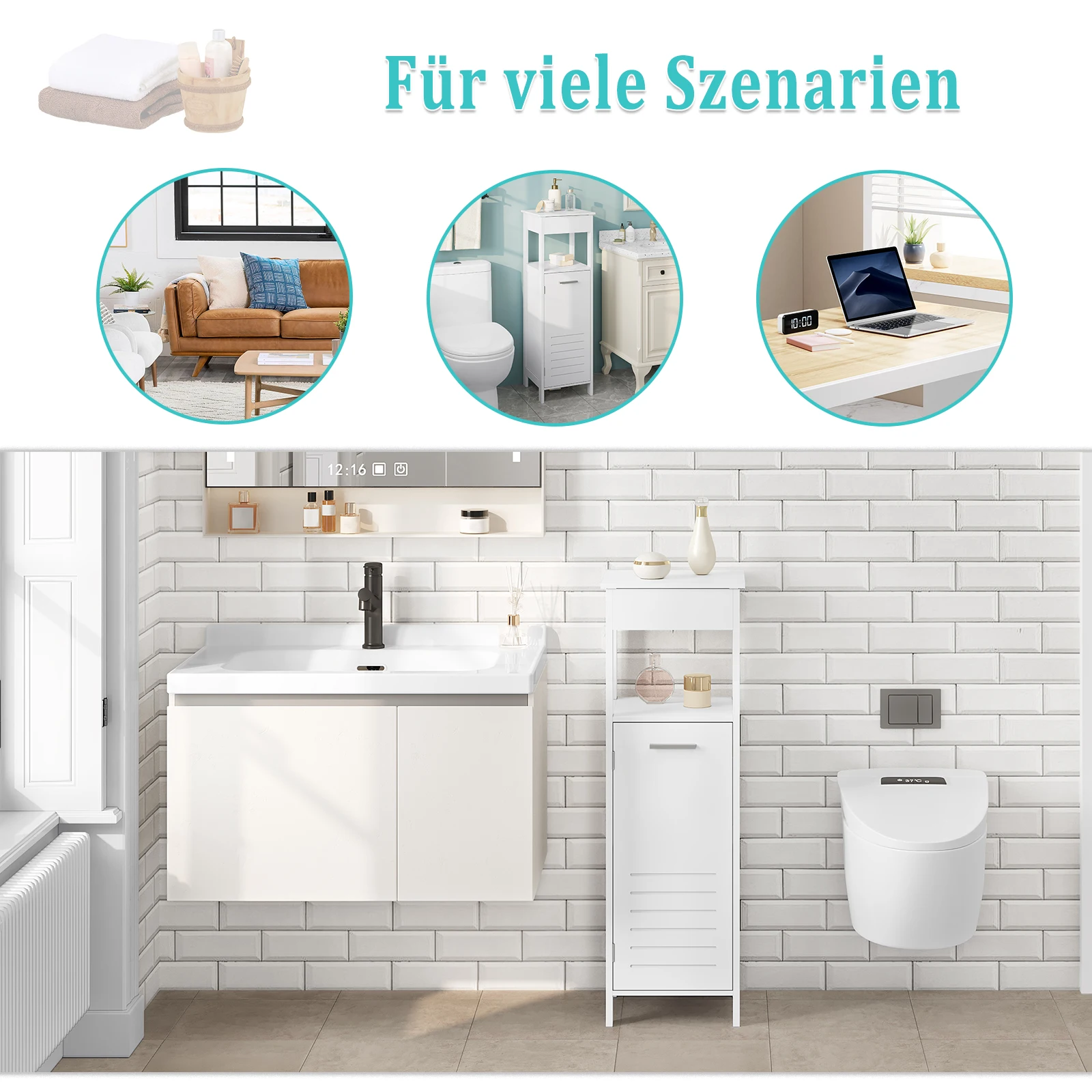 32x99x30cm White Bathroom Cabinet 4 Levels with Door Adjustable Shelf Standing Corner Cabinet for Living Room Hallway