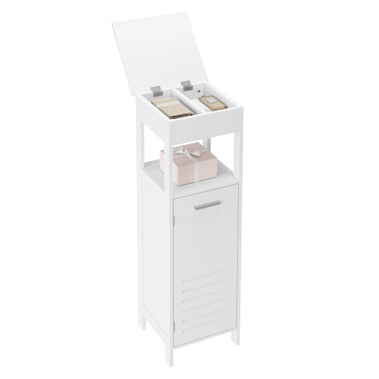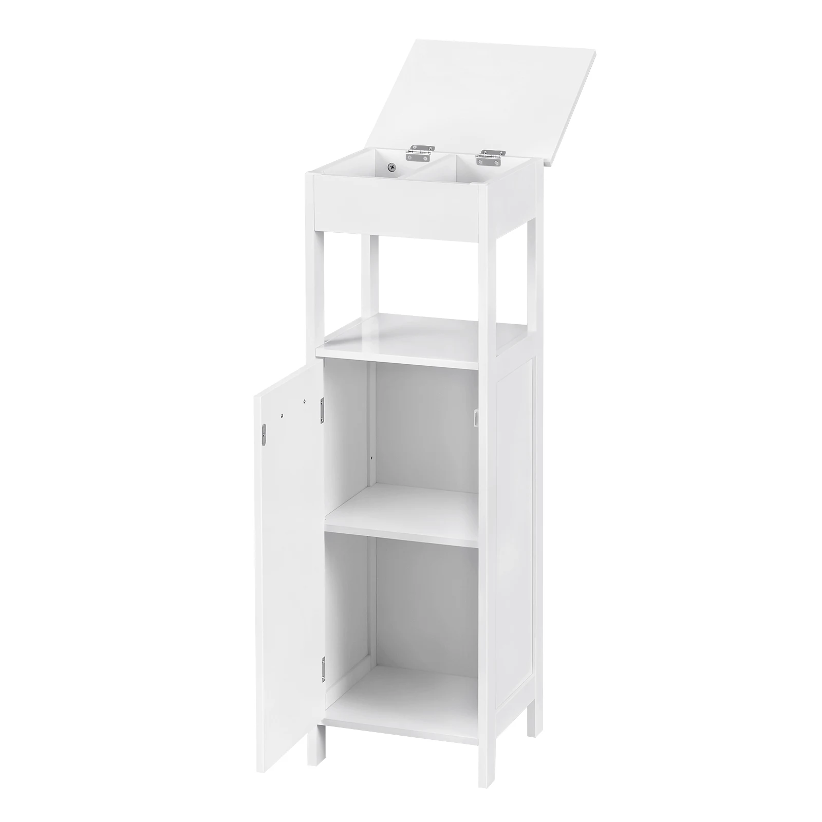 • Open and Hidden Storage: The narrow cabinet combines open storage (1 open shelf and 1 shelf) and hidden storage (2 lockers under the shelf and 2 shelves behind the door). You can store items within reach