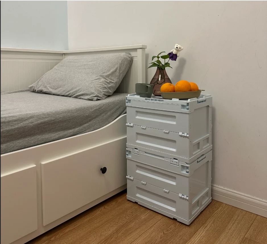 이것은 기능 수납함으로 수납과 덧대어 선반, 침대머리장으로 사용할 수 있다. 사용이 간단하고 설치할 필요가 없다.