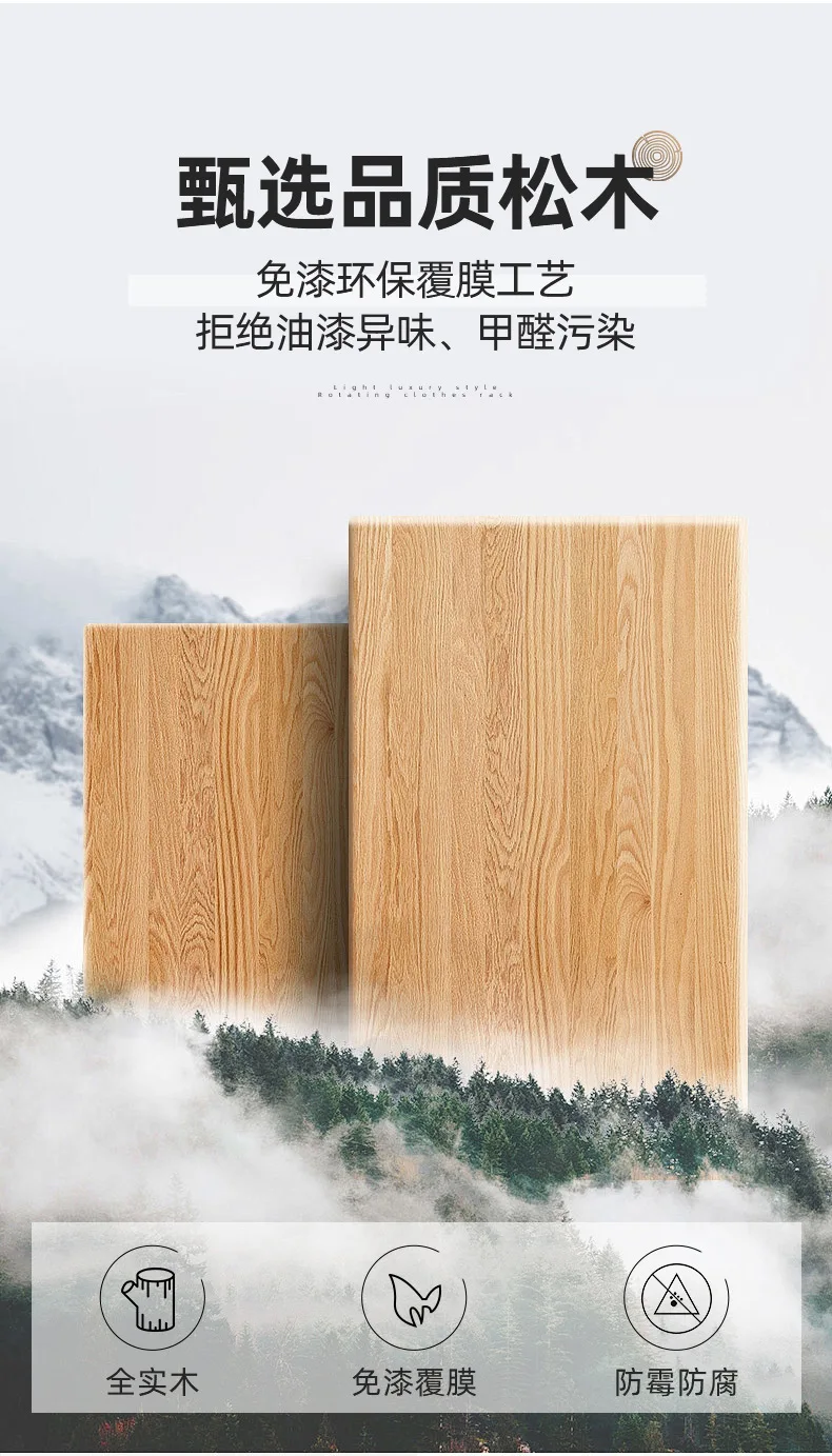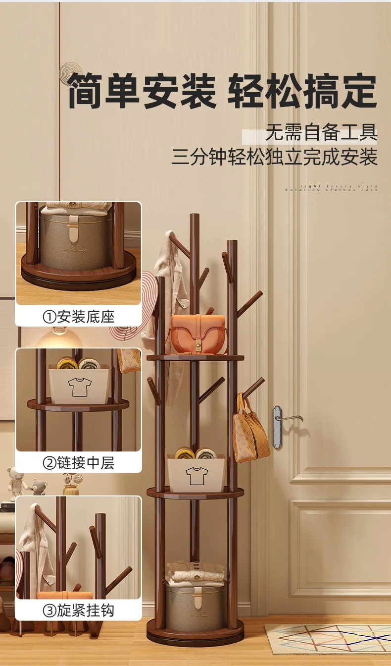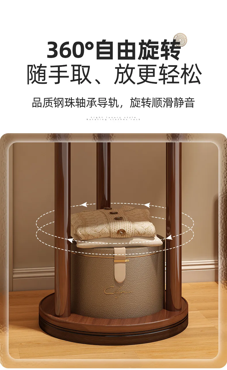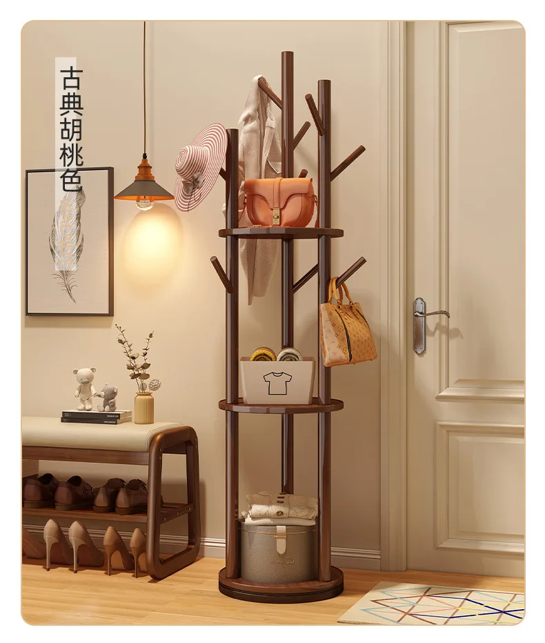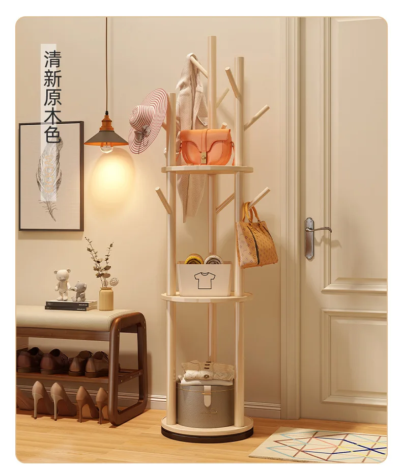 Rotating Wooden Coat Rack Durable Floor Standing Clothes Hanger Bedroom Clothes Rack Stand Space-Saving Storage Rack