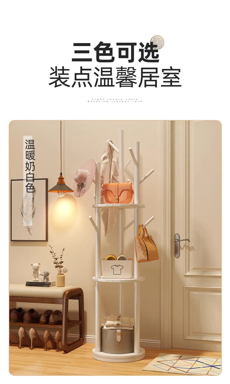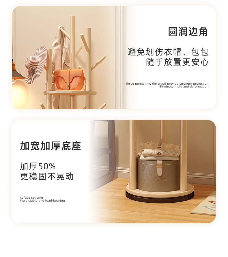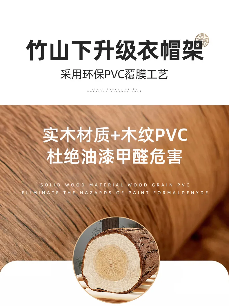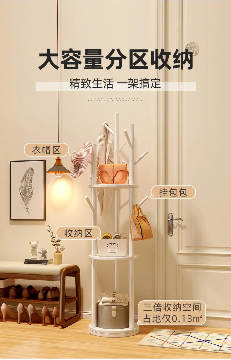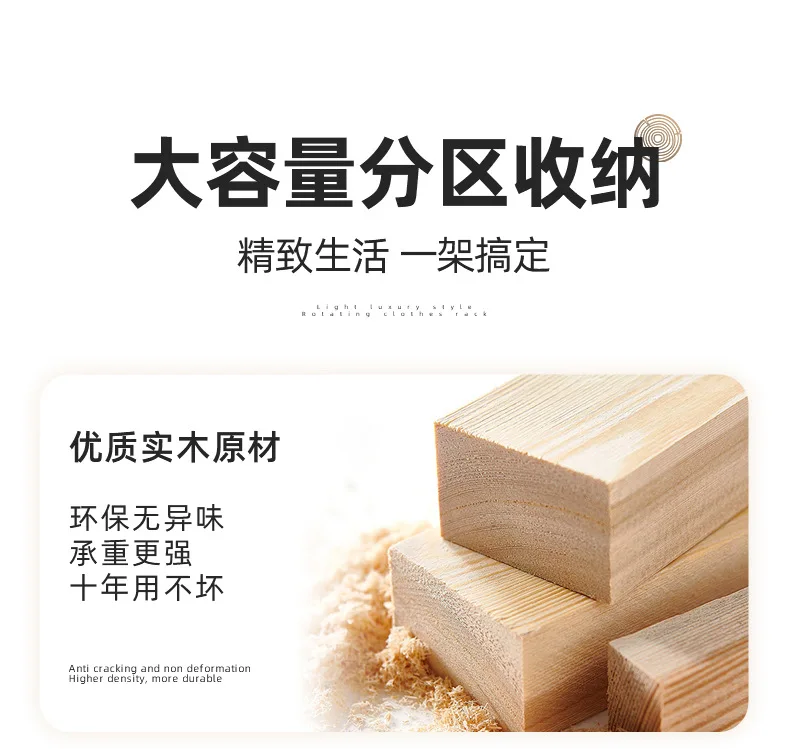 Rotating Wooden Coat Rack Durable Floor Standing Clothes Hanger Bedroom Clothes Rack Stand Space-Saving Storage Rack