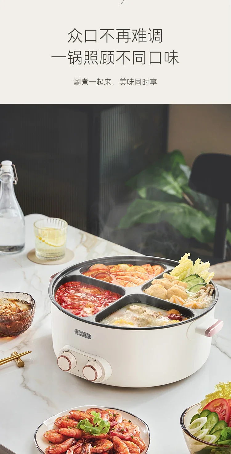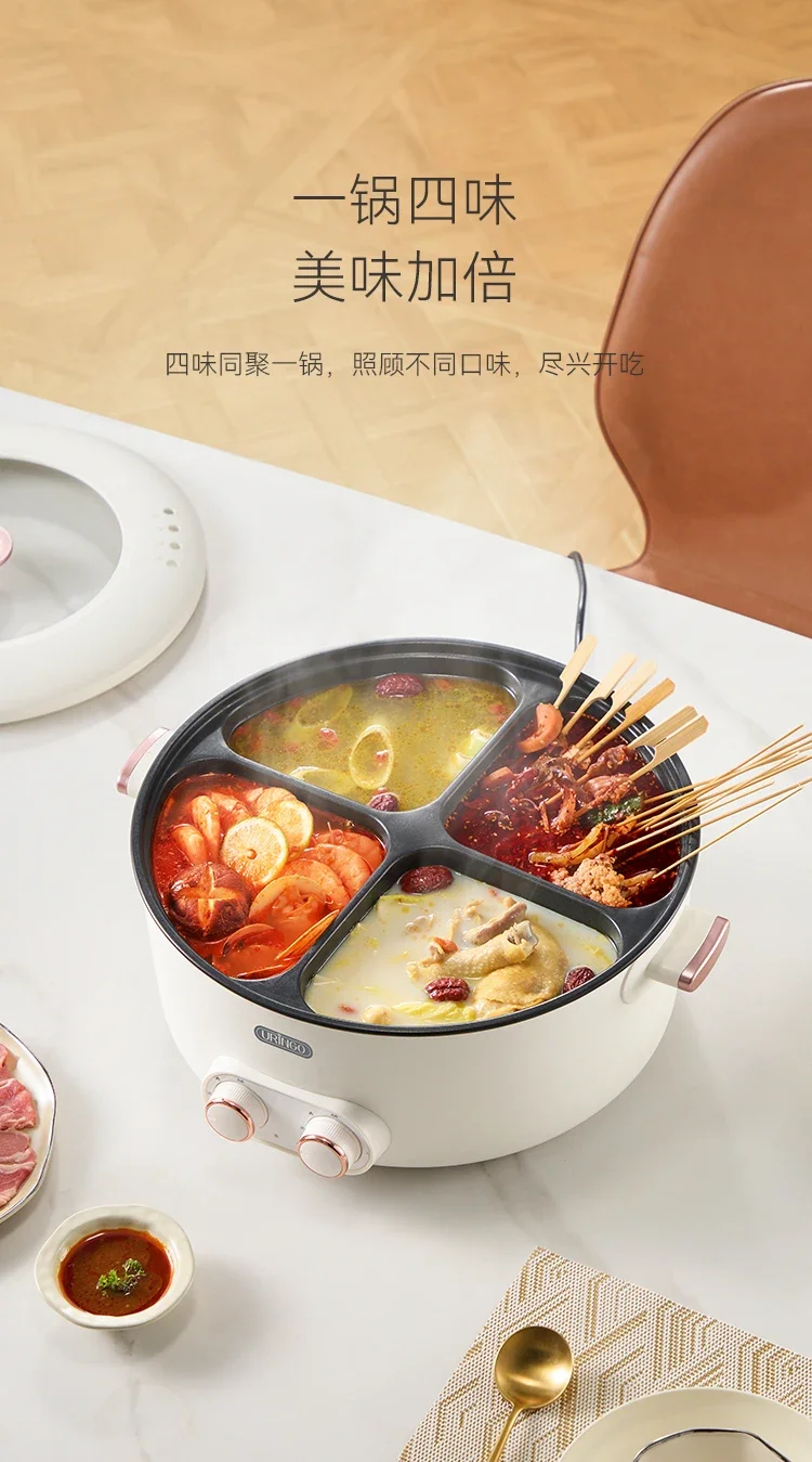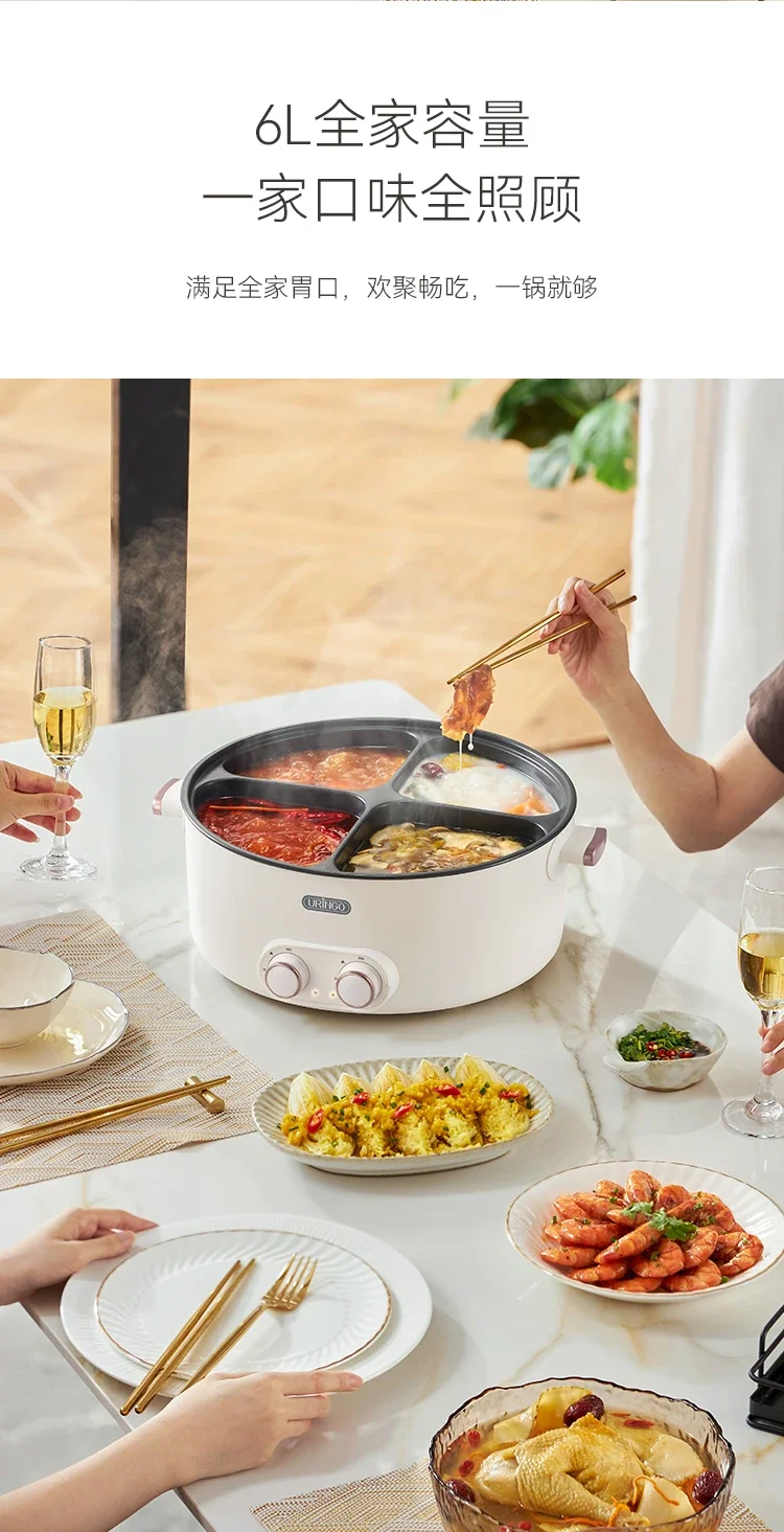 Mandarin duck electric hot pot four-square box multi-functional household 6L large-capacity electric cooking pot new model