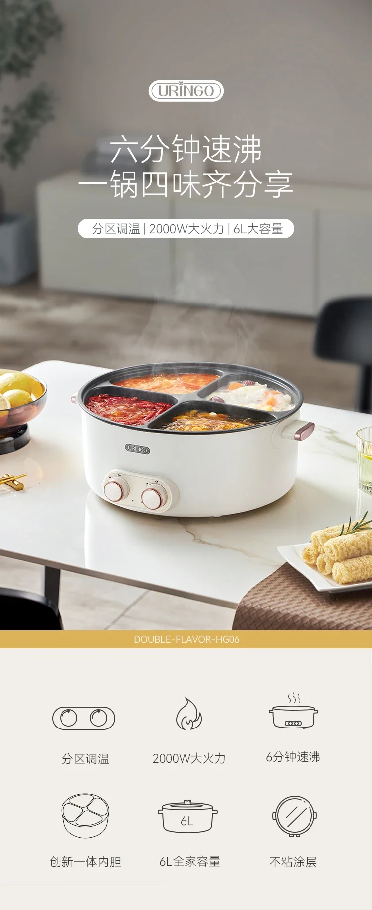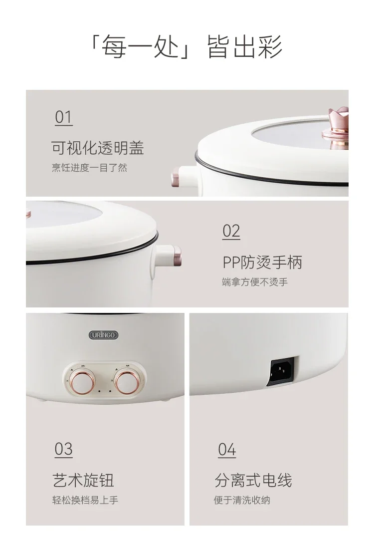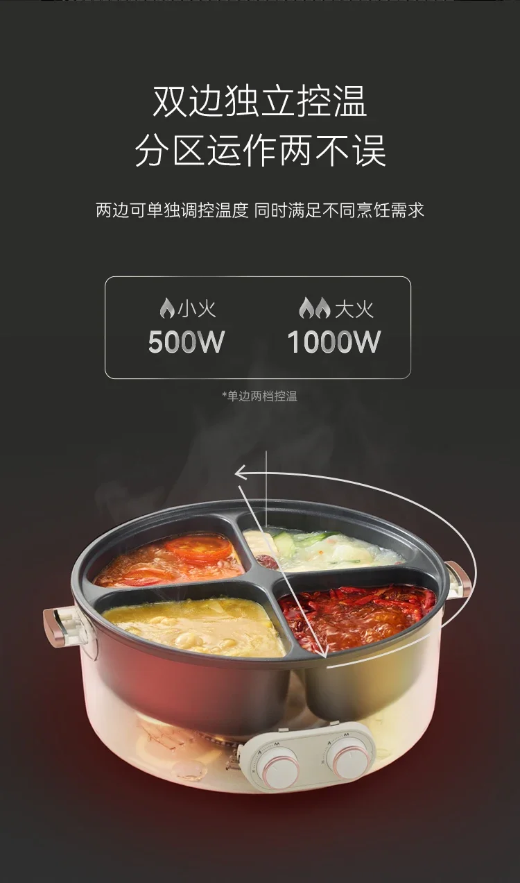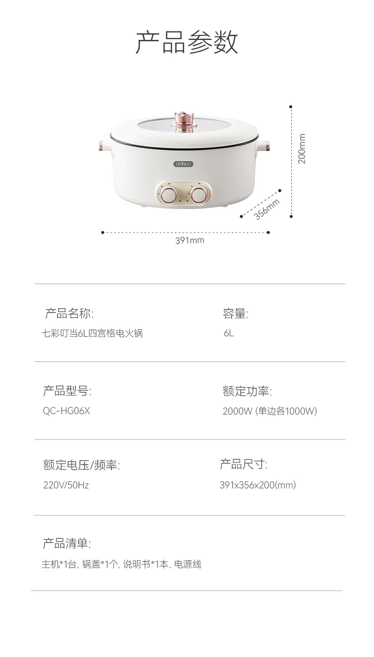 Mandarin duck electric hot pot four-square box multi-functional household 6L large-capacity electric cooking pot new model