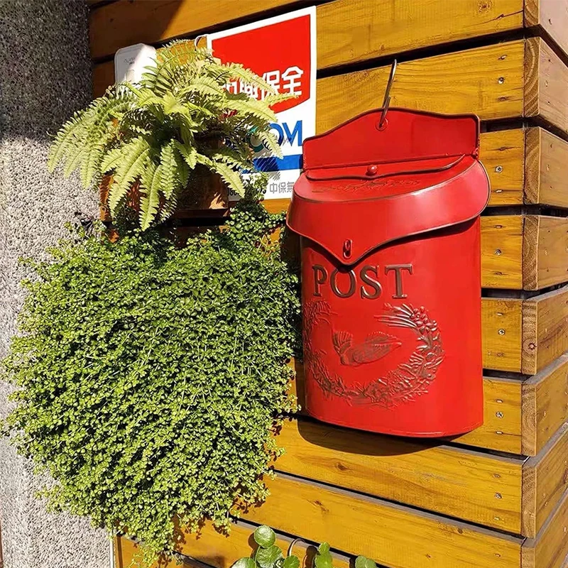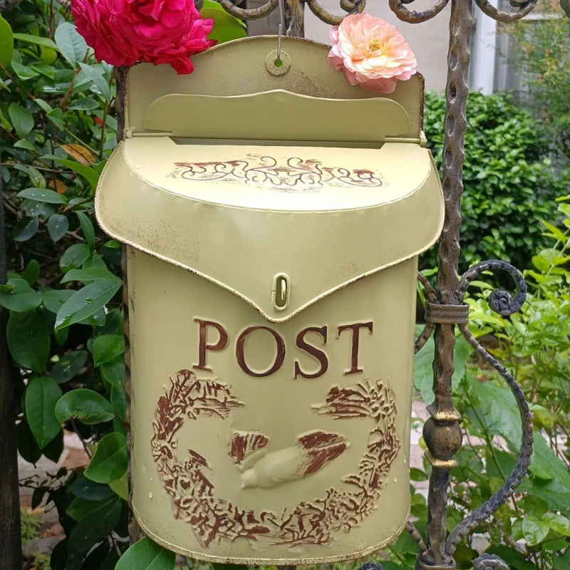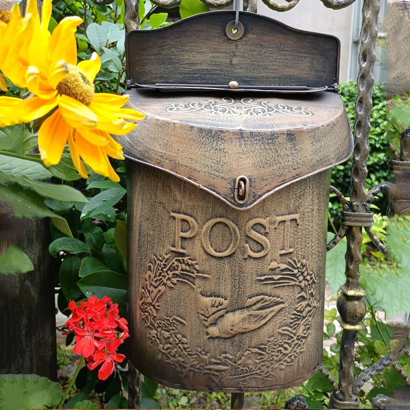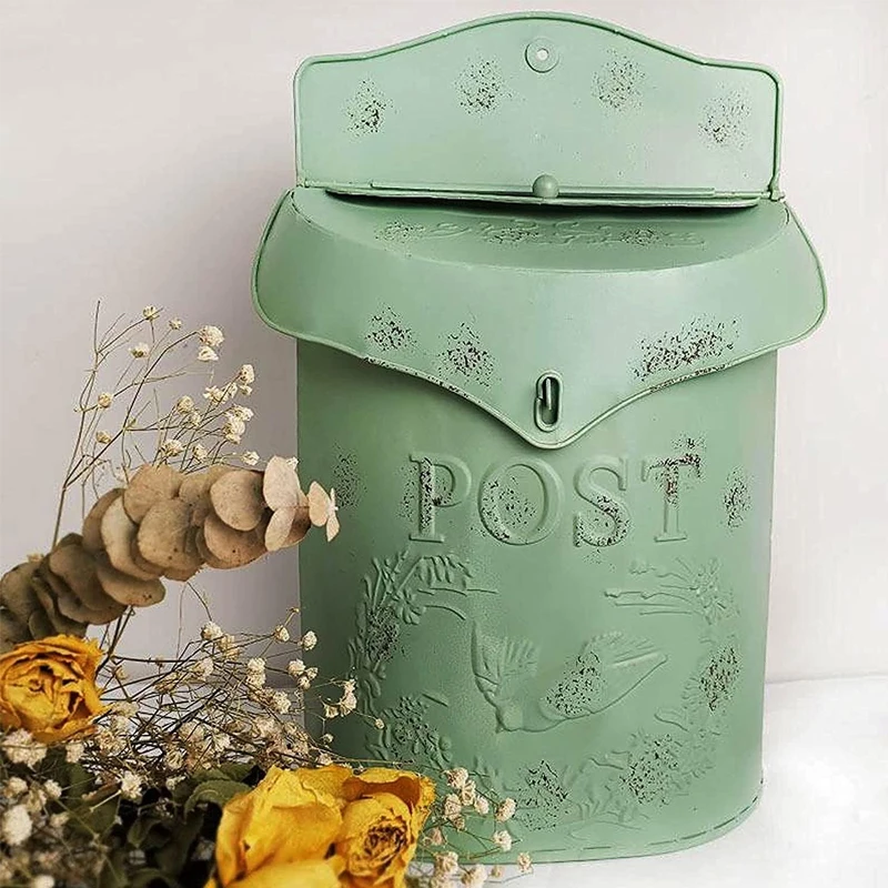 The front of this vintage-inspired mailbox has a small padlock hasp and latch to easily keep all your important documents secure (lock is not included)