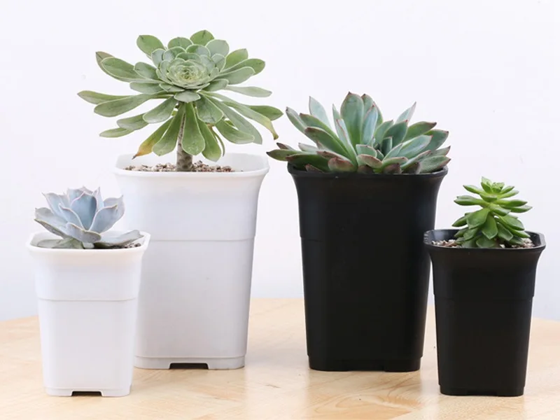 Black/White Thicken Square Succulent Flower Pots Cactus Plant Deep Type High Waist Vientiane Pot Nursery Flowerpot Garden Decor