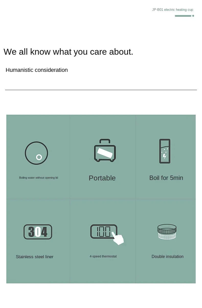 220V Electric hot water cupSmall portable kettle travel heating smart insulation artifact mini health cup