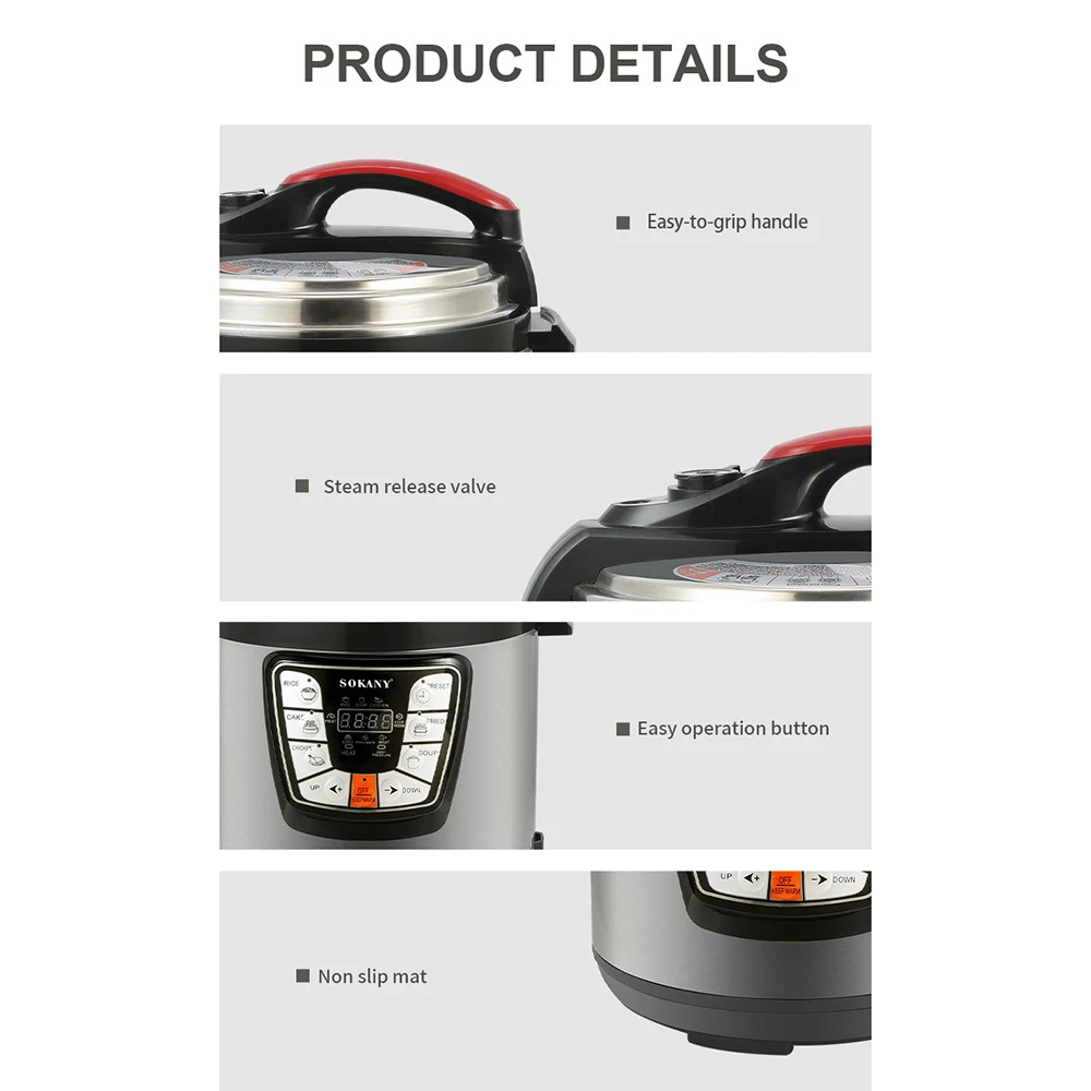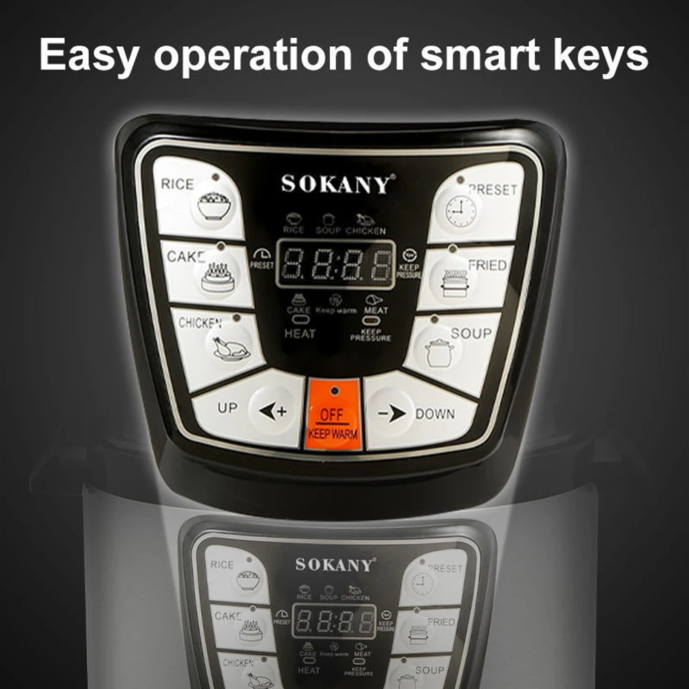 A range of preset functions for any kind of meal: white rice, brown rice, steamed rice, instant burning rice, steamed meat, and vegetables while cooking rice underneath.