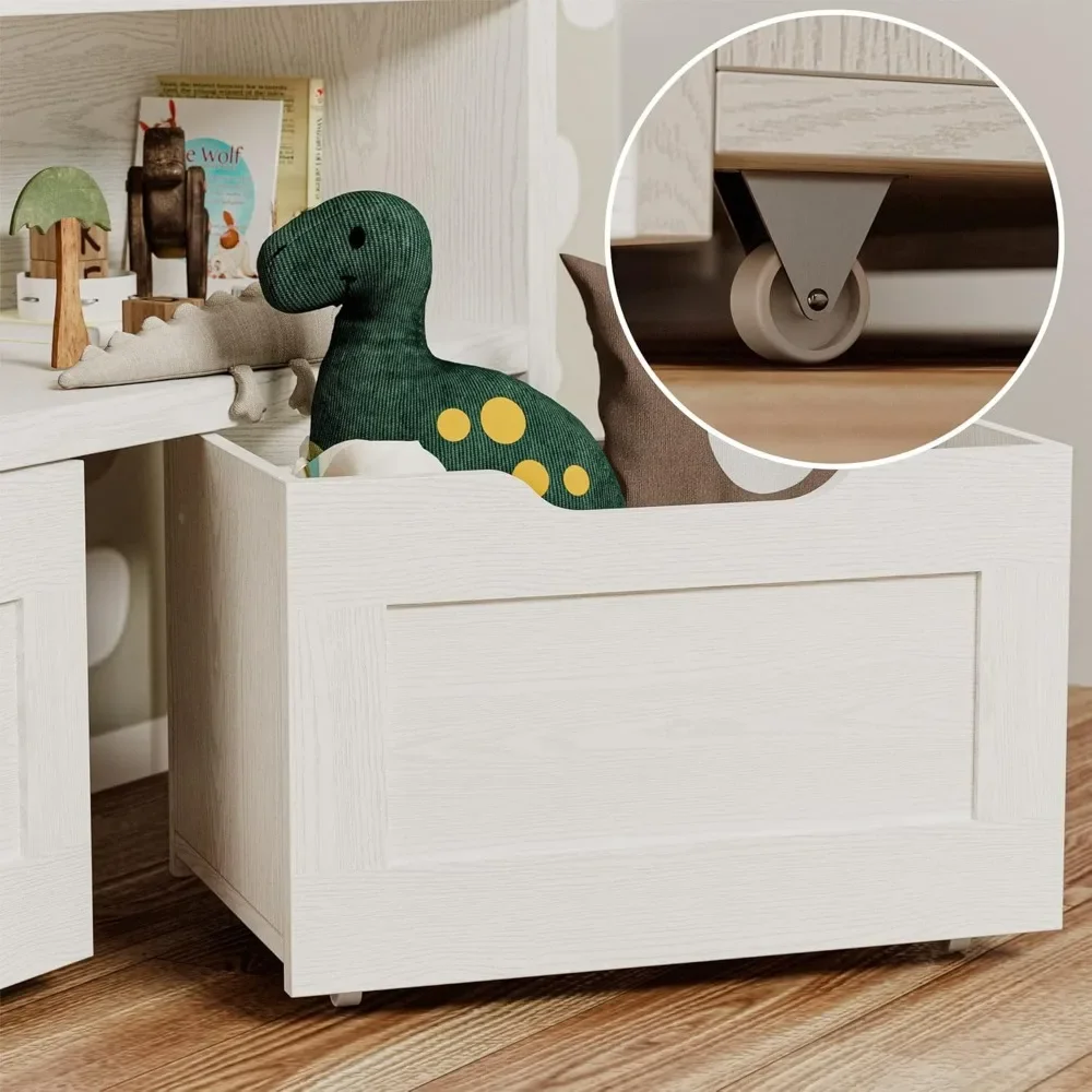 Removable drawer with wheels: The drawer features a grooved design and 360-degree swivel wheels. It's easy to drag the boxes to wherever you want to play or organize, and then move them back to their original position without too much effort