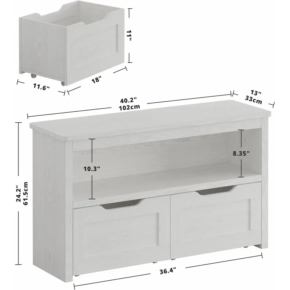 Dimension: 40.2" W x 13" D x 24.2" H. drawers size: 40.2" W x 13" D x 24.2" H. Upper open cube shelf size: 40.2''W x 13''D x 10.3''H