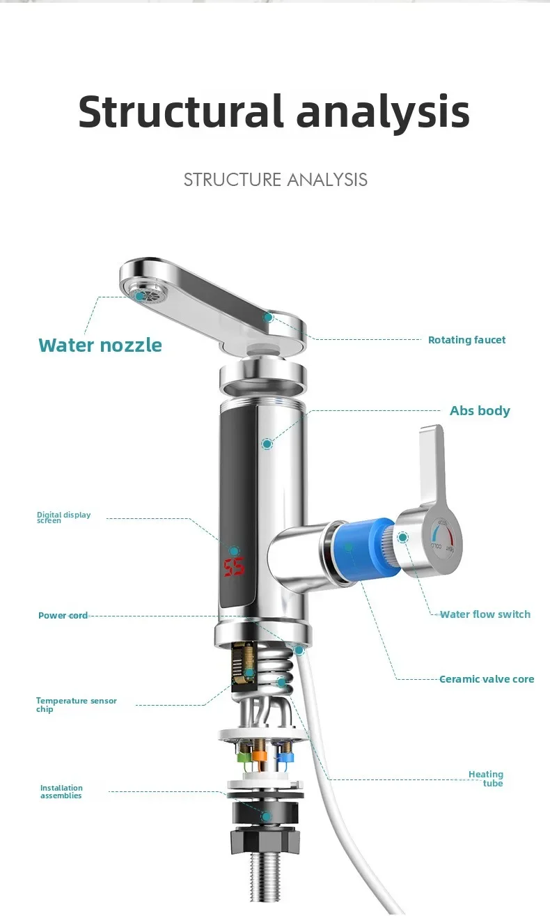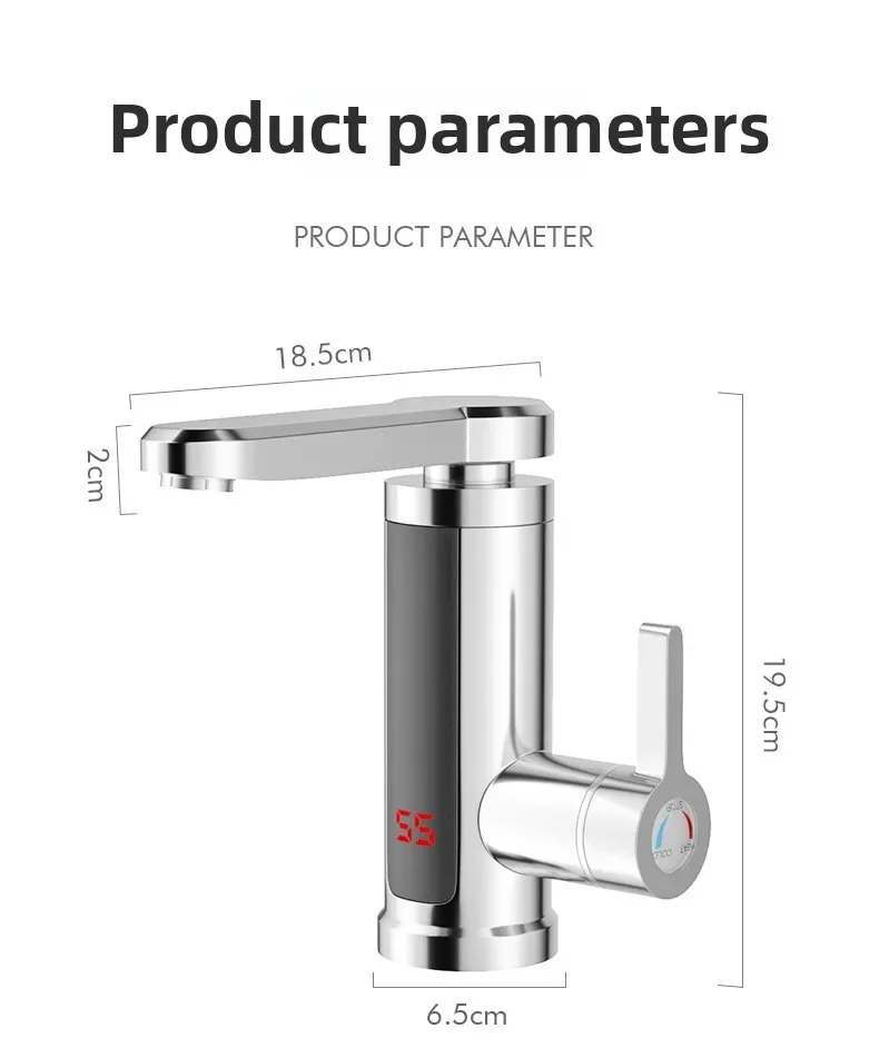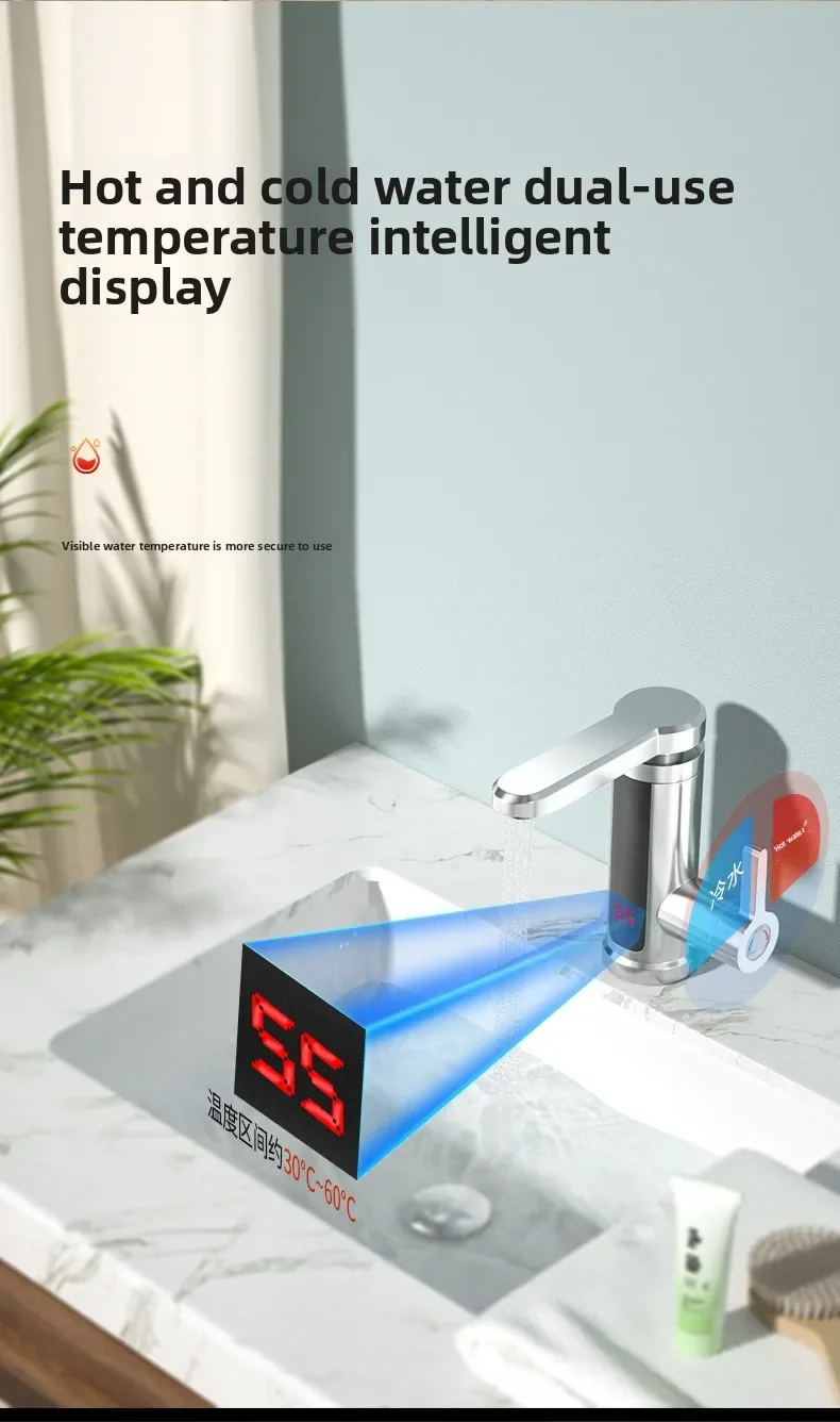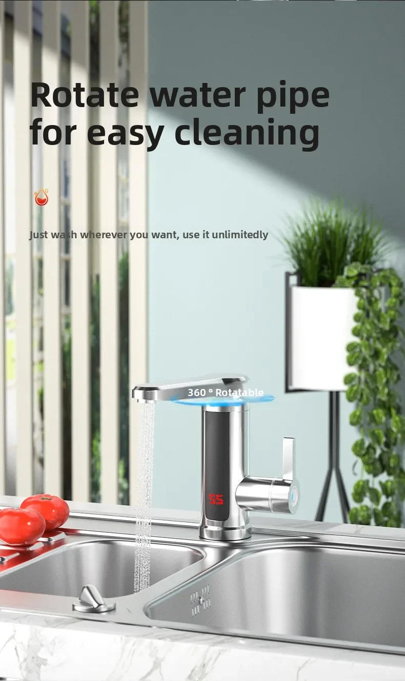 Electric Water Heater 220V Kitchen Faucet Tankless Instant Heating Water Tap Flowing Heated Mixer Digital Display