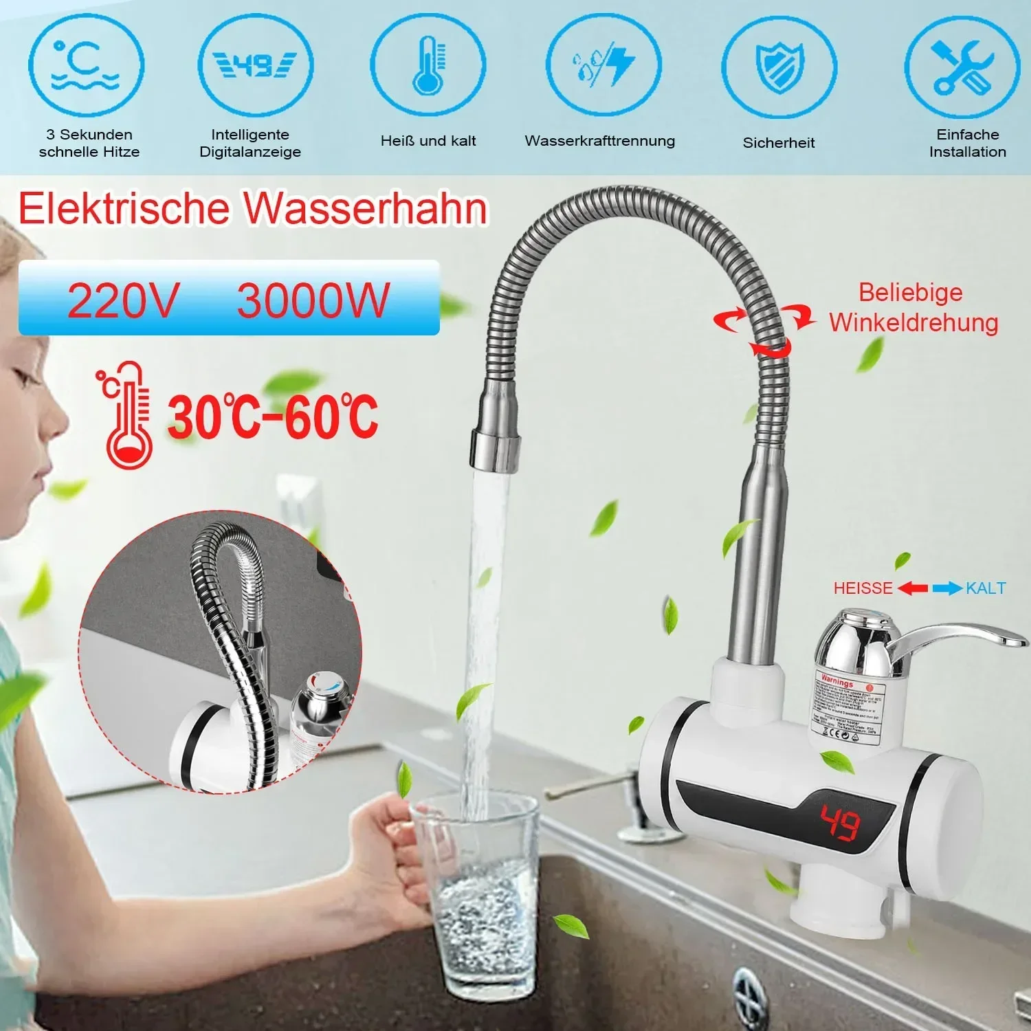 3000W Electric Kitchen Water Heater Tap Instant Hot Water Faucet Heater Cold Heating Faucet Tankless Instantaneous Water Heater