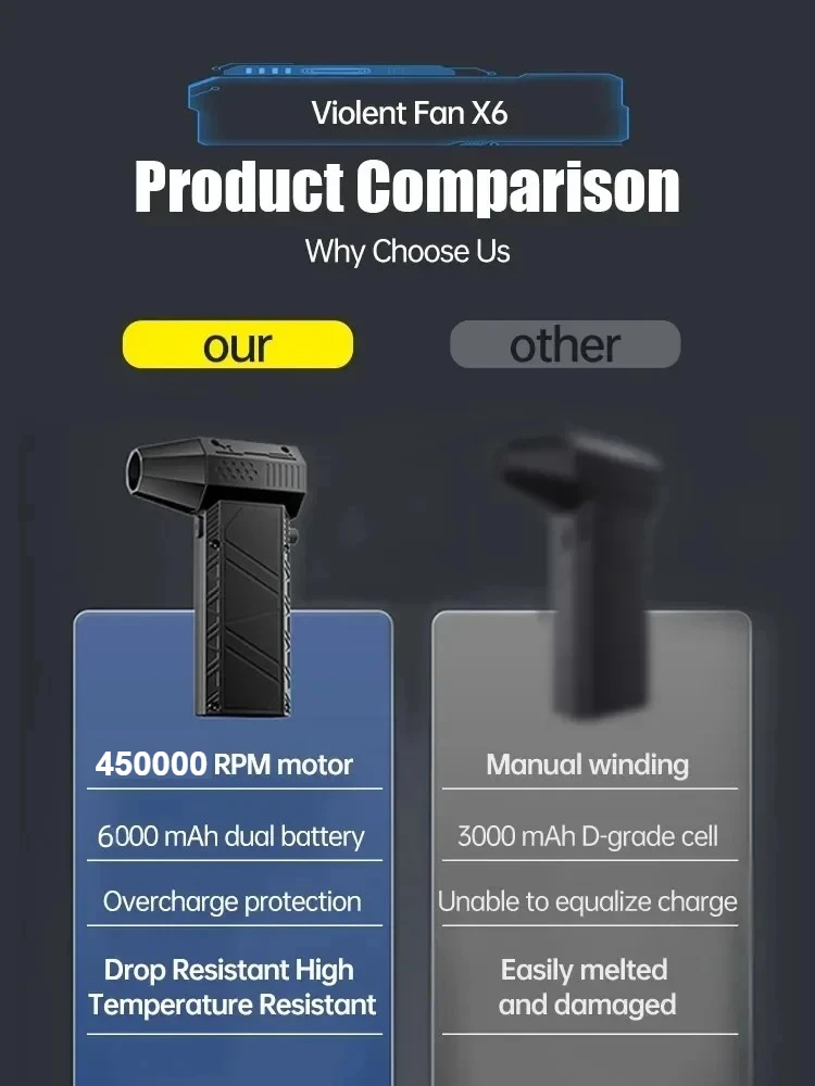 4. Infinite speed regulation, easy to operate with one hand, two in one switch speed regulation, increasing air volume from small to large, better protecting the motor.