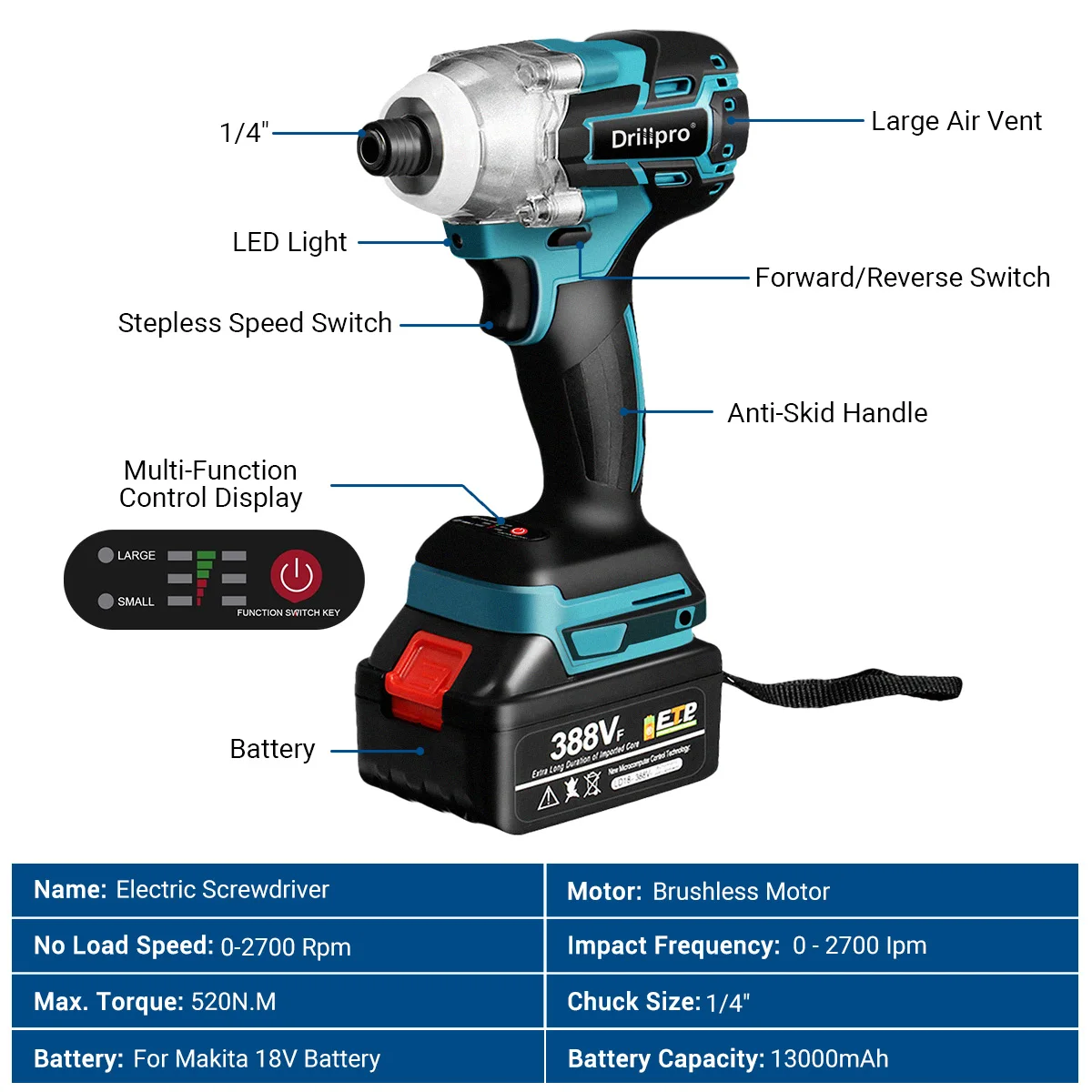 -520N.M high torque, stepless speed change switch.