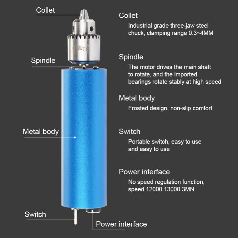 Adjustable electric portable DIY PCB handheld drill, body metal frosted design, small and comfortable, non slip.