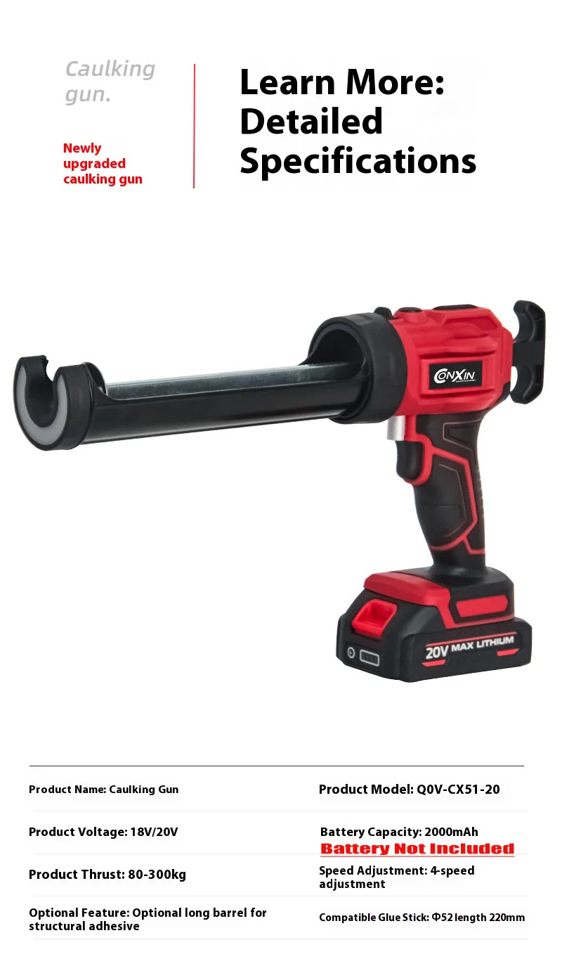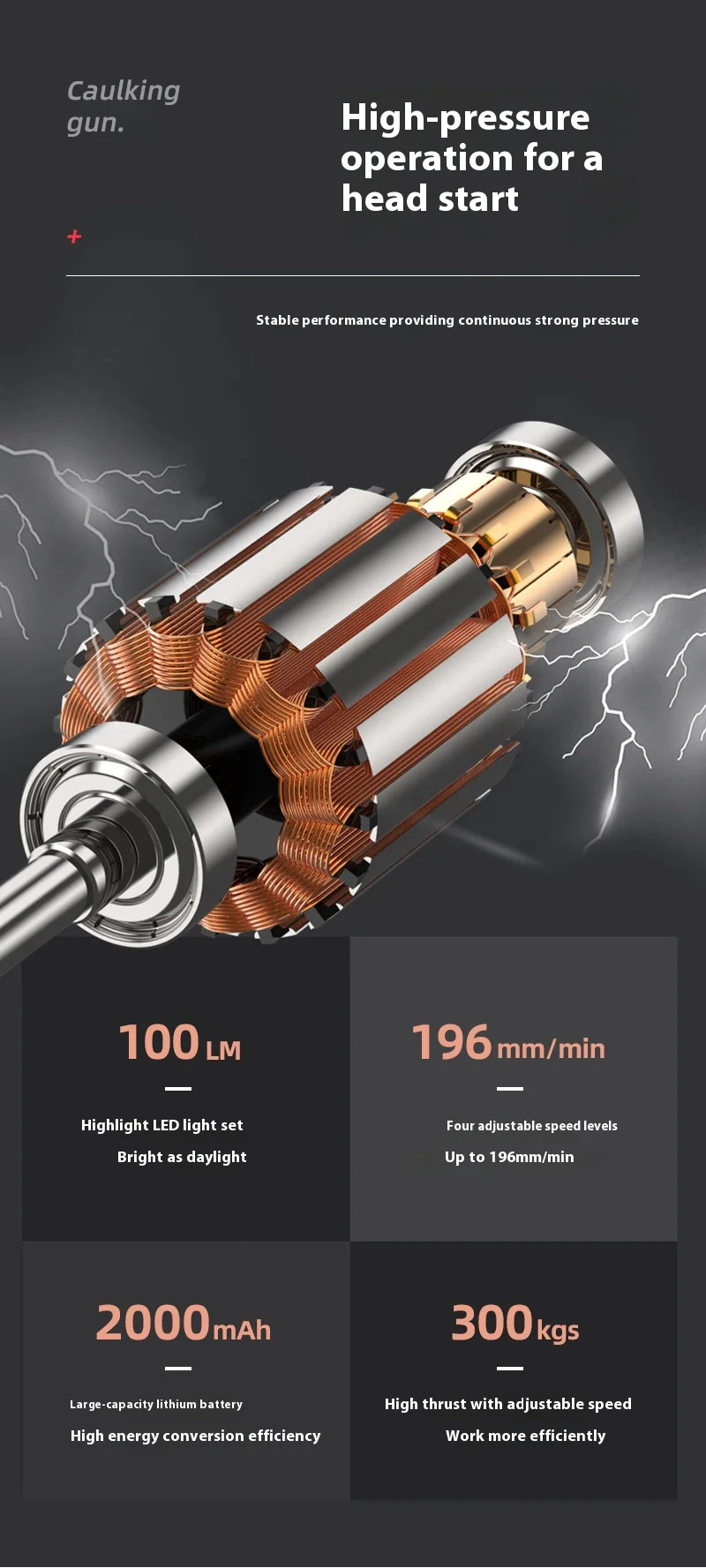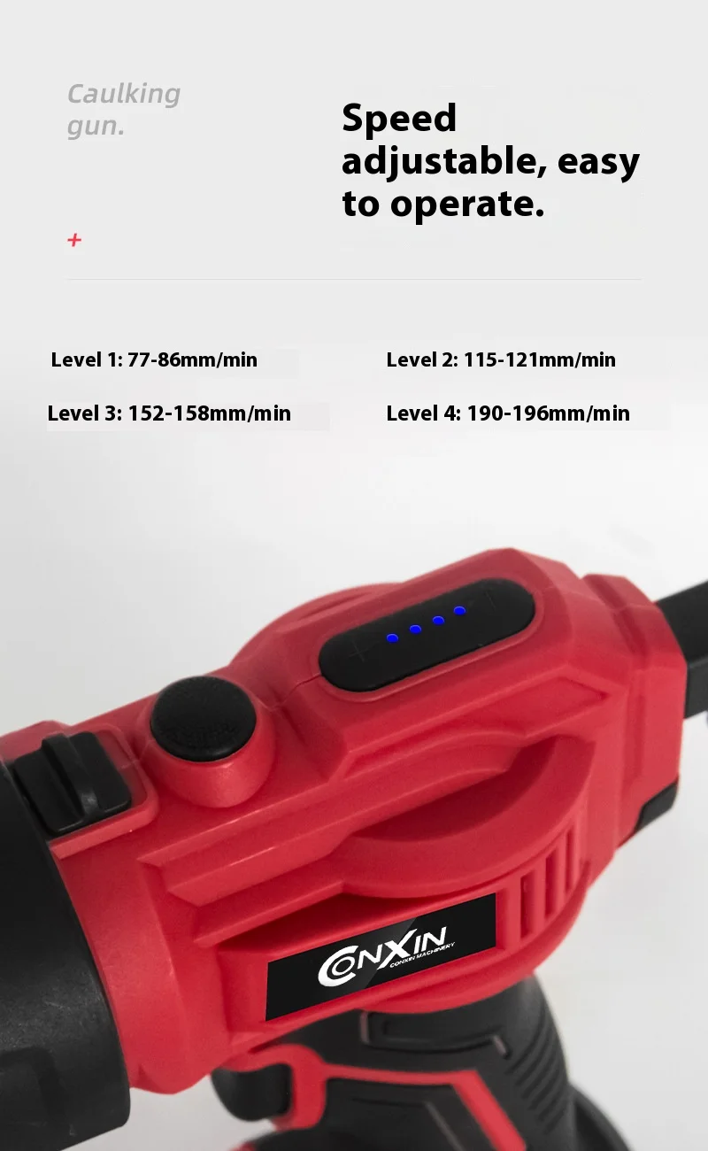 【4 Gear Adjustable Speed】The caulking gun has four gears of variable speed, the pushing speed can be adjusted from 0 to 196mm/min. The variable trigger can also control the flow rate, The corresponding flow rate can be selected according to different needs, which can better control the flow of glue.