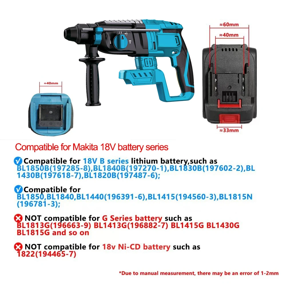 Compatible Battery: for Makita/Dewalt/Milwauke 20V Battery