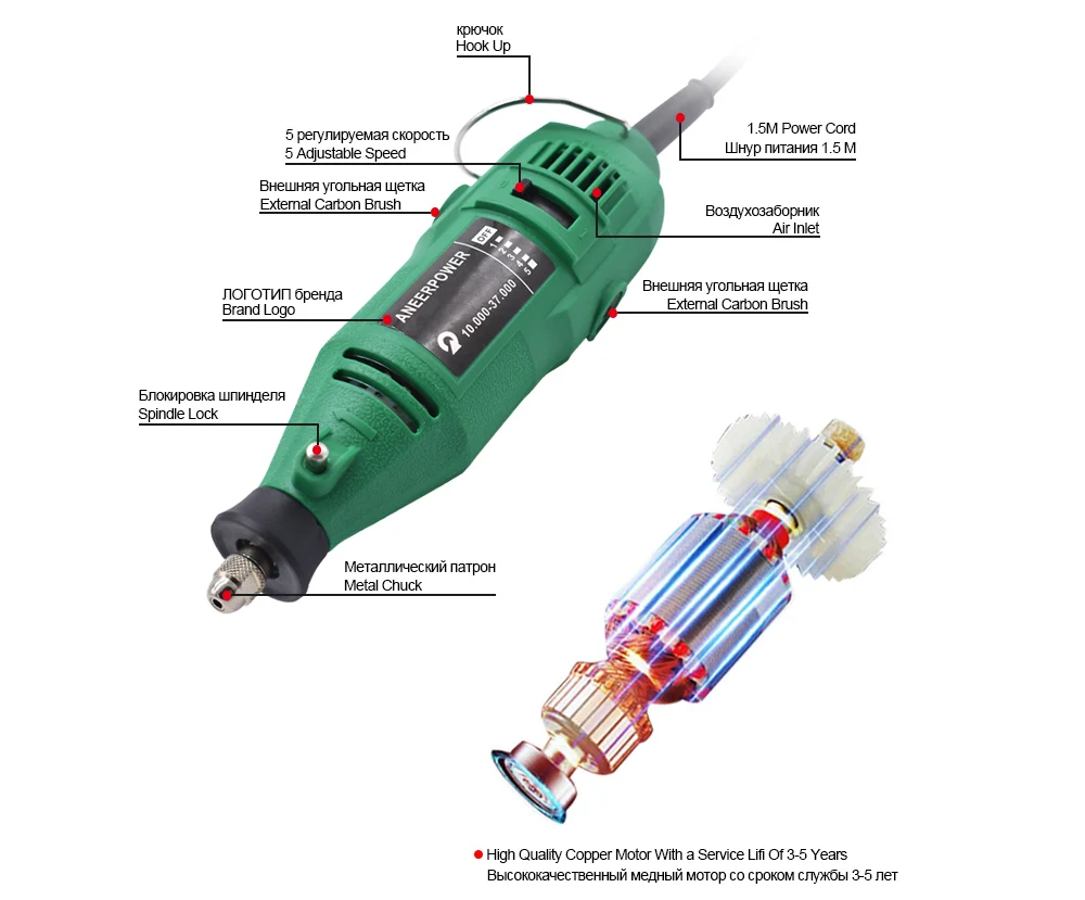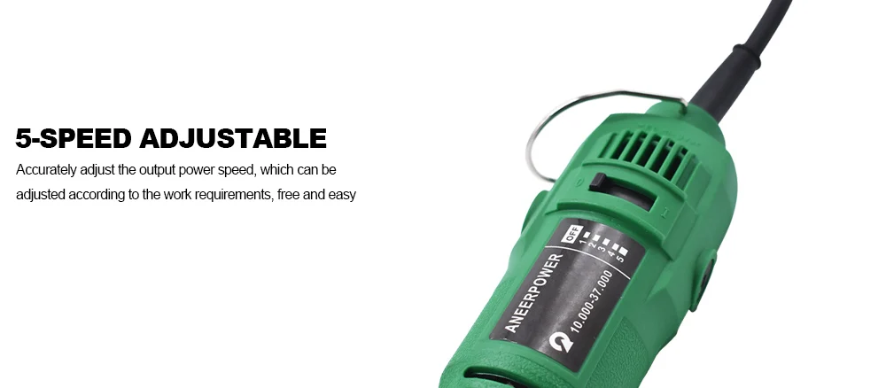 The Aneerpower MOD:DM-2 has 5 speed control which allows you to set your speed.Variable speed from 10,000 to 30,000 RPM to match the proper speed requirement.