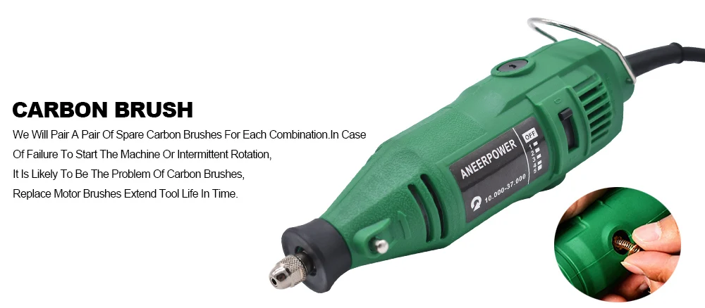 We Will Pair A Pair Of Spare Carbon Brushes For Each Combination.In Case Of Failure To Start The Machine Or Intermittent Rotation,It Is Likely To Be The Problem Of Carbon Brushes,Replace Motor Brushes Extend Tool Life In Time.