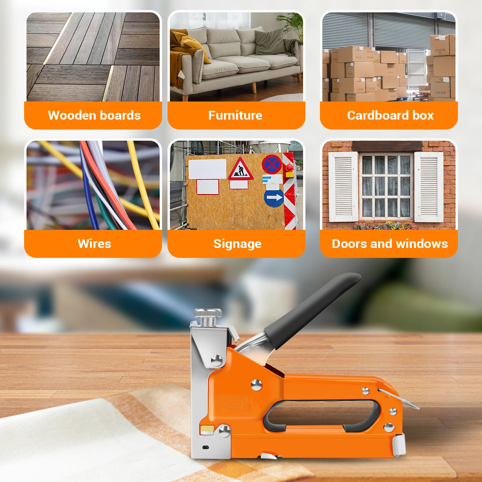 【High Quality & Ergonomic】 Hand tacker is made of high quality metal, very sturdy and durable.The ergonomic handle makes it more comfortable to use and labour-saving.