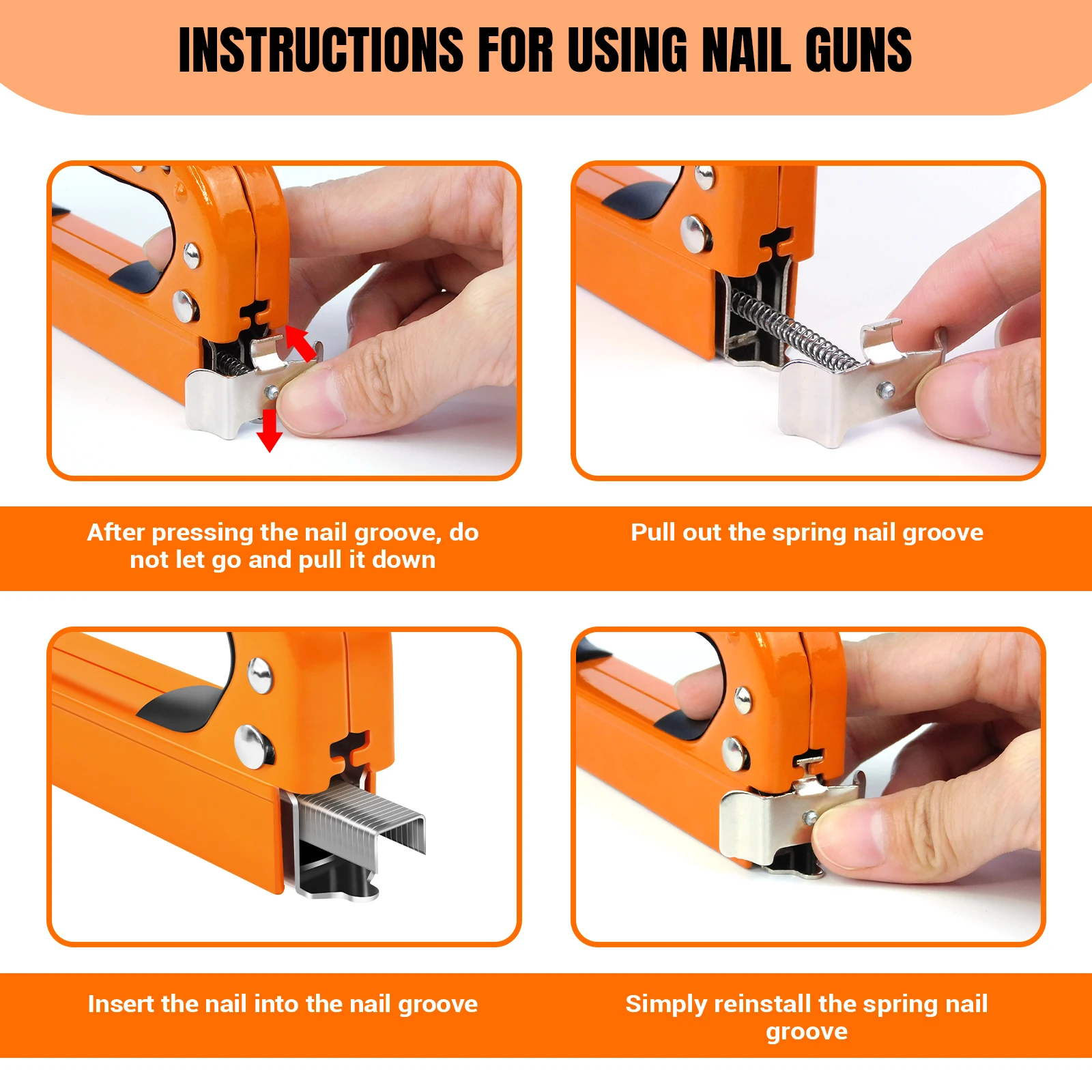 【Easy to install and use】A quick and easy staple change is made possible by the hinged magazine. When the staple is jammed, you can press the switch and pull down the metal channel to remove the jammed staple.