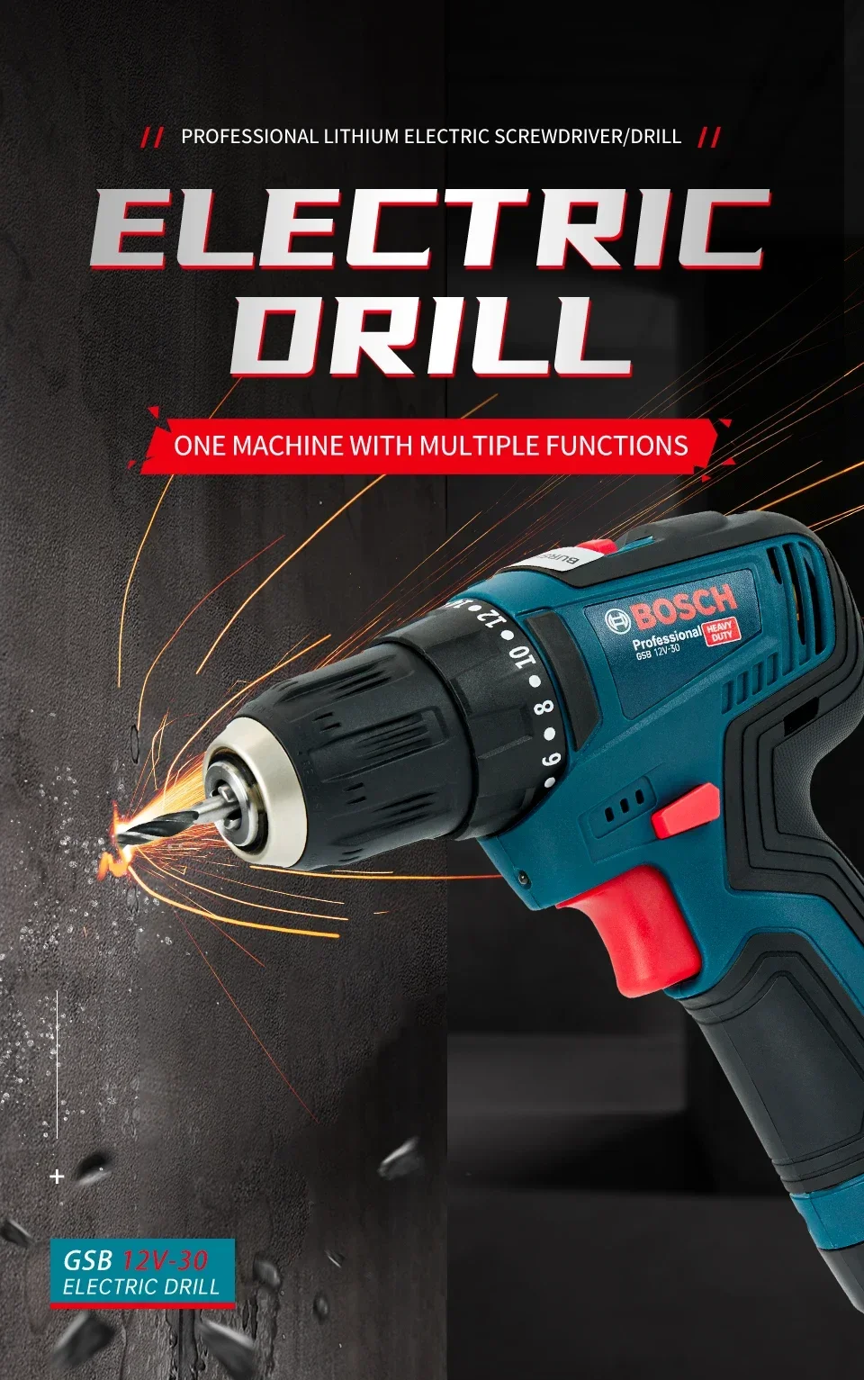 Bosch-GSB-12-V30 Professional Electric Drill, Cordless Driver, Heavy Duty, Multifunctional, Household, Screwdriver, DIY